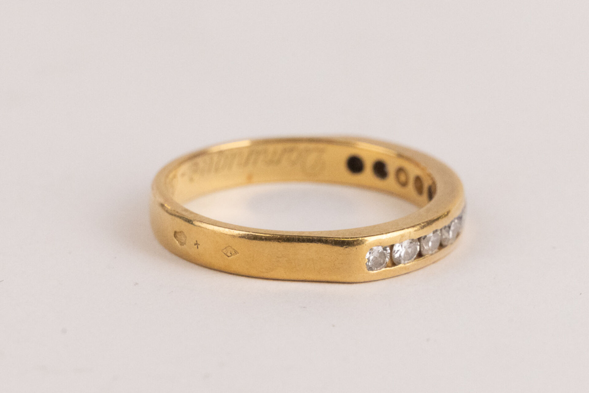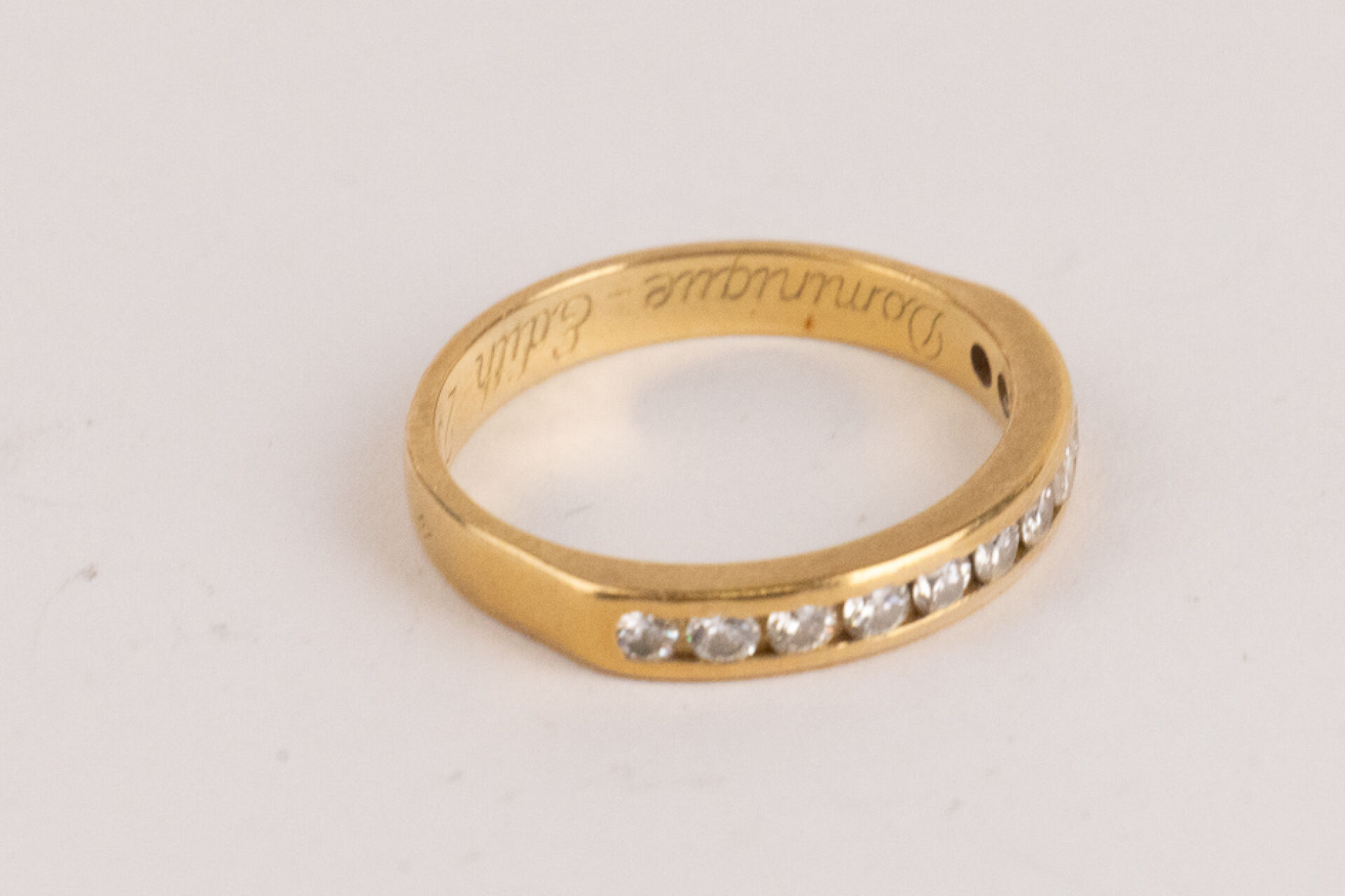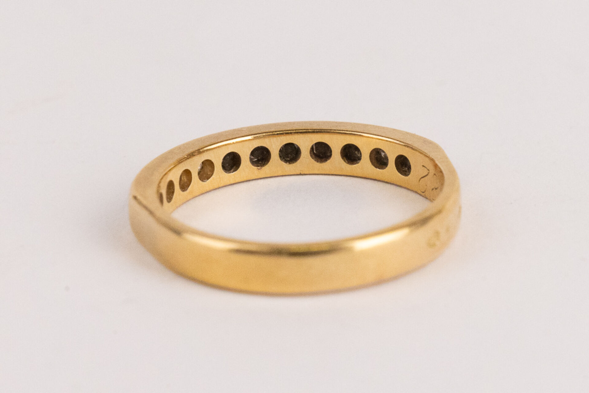 Alliance en or jaune 18k (750 millièmes) ornée de onze diamants de forme brillants sertis. Poids brut : 2,40 gr - Tour de doigt 49