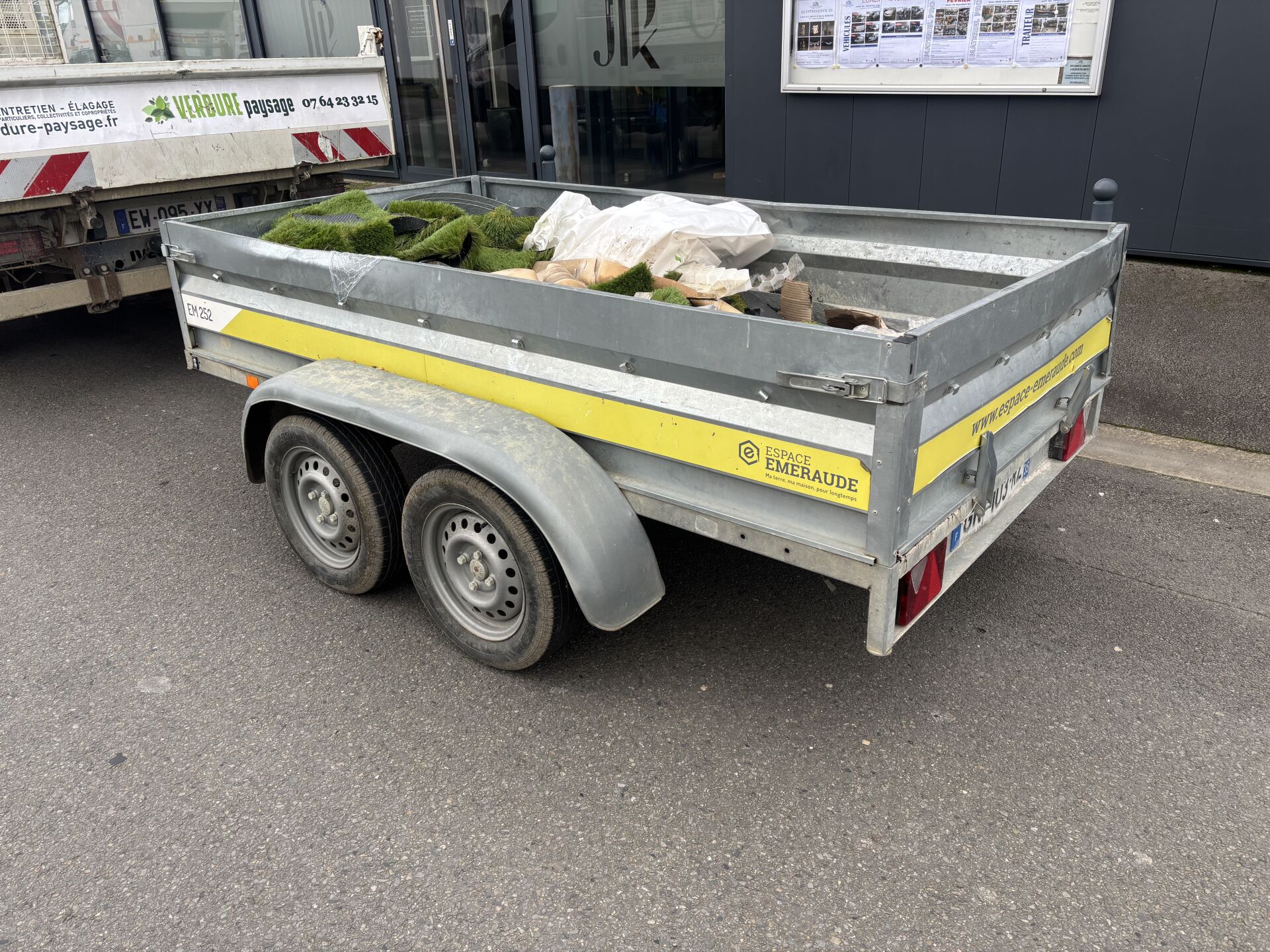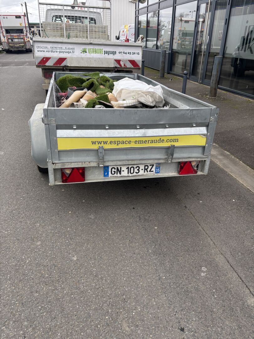 Commentaires : Double essieu, ridelles. PTAC 750 kg