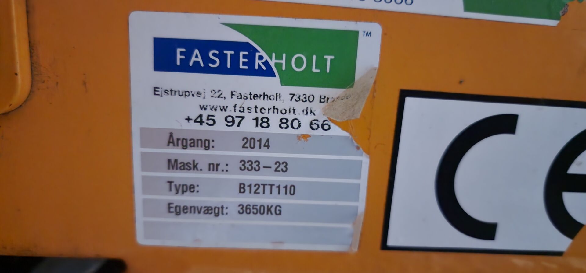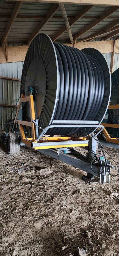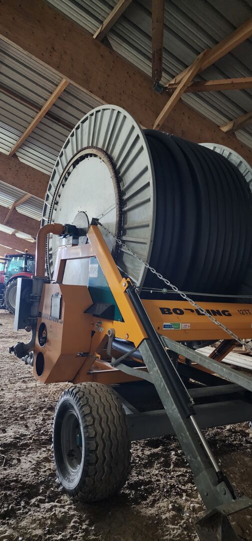 1 enrouleur FASTERHOLT BORDING B12TT 110 châssis No 333-23, poids 3650 kg, de 2014 avec 1 chariot porte-asperseur sur roues