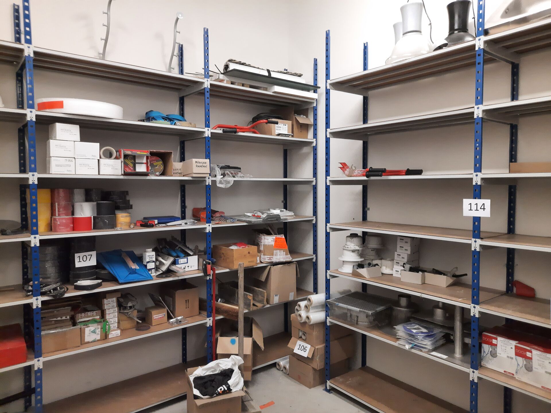 18 m linéaires d'étagère en métal laqué bleu