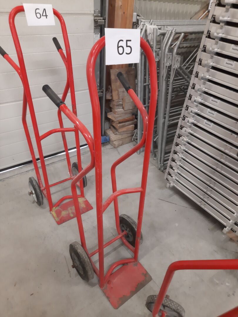 Diable porte-bobine en métal laqué rouge