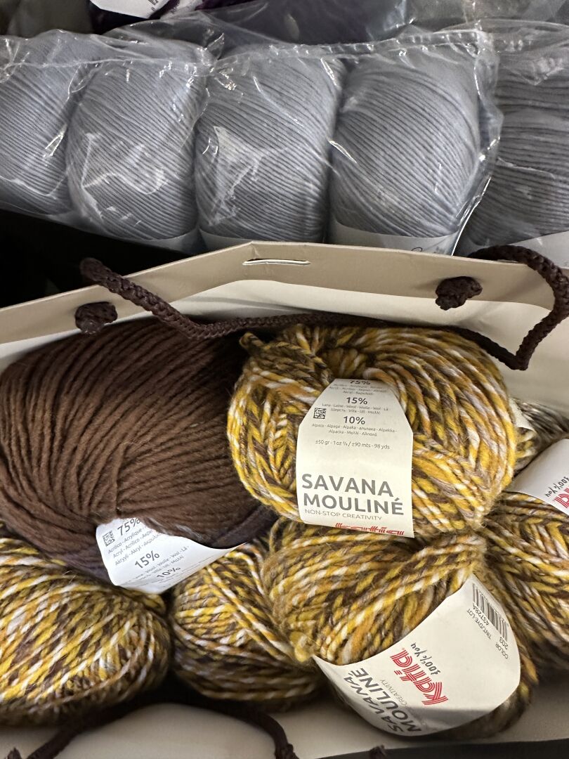 1 stock d'environ 500 pelotes de laine et accessoires (aiguilles à tricoter, mesureur diamètre aiguilles, dévidoir pour laine, livres sur le tricot, le crochet, ...)