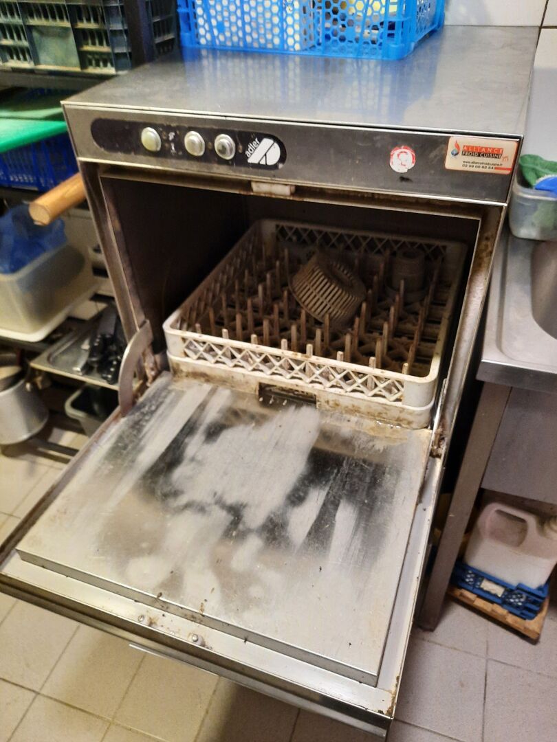 Lave-vaisselle ALDER pour panier 50x50 cm, sur support en inox 58x60x78 cm (dim sans support) On joint : 2 paniers RESPECTER L'ETANCHEITE DU BATIMENT. PREVOIR BOUCHON.