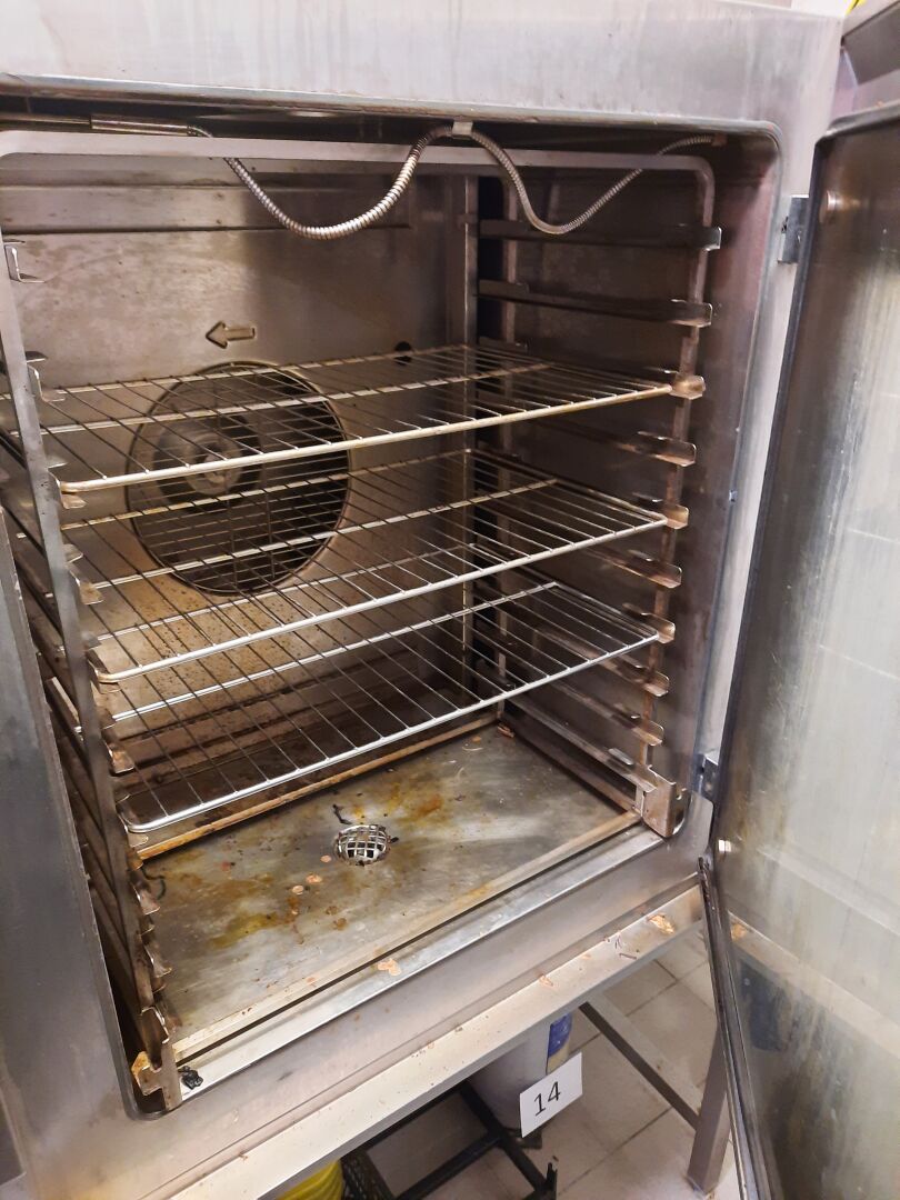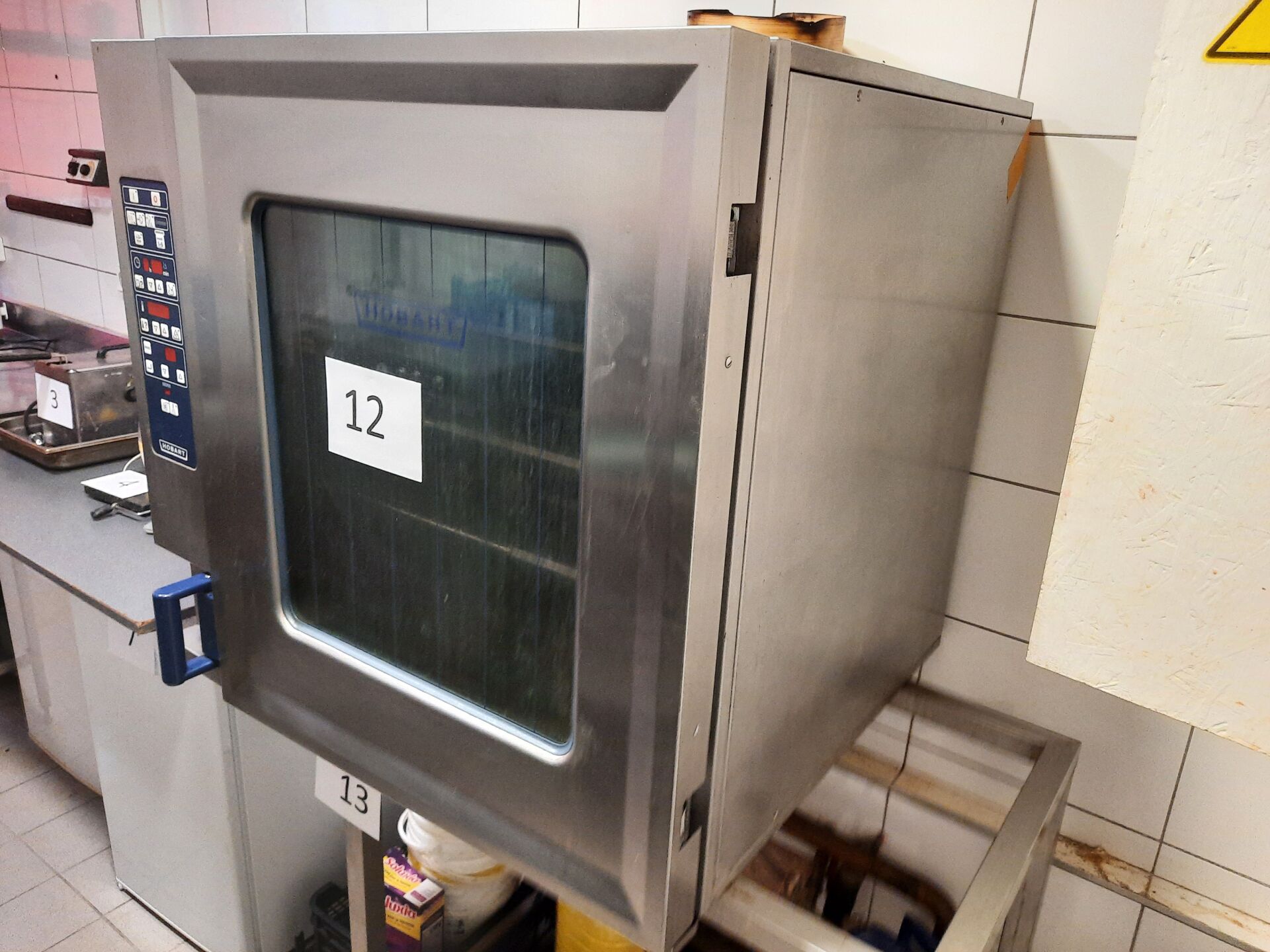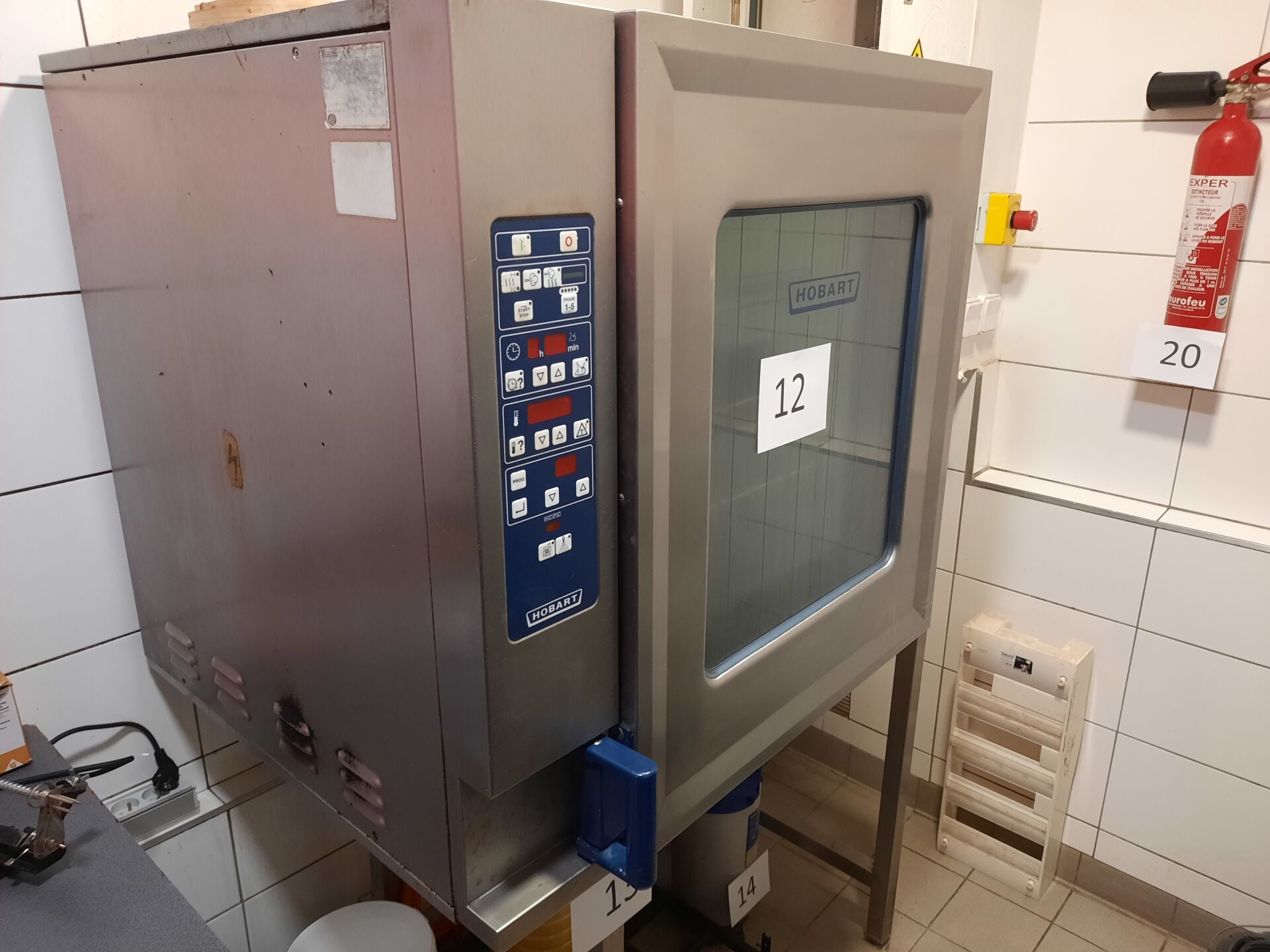 Four électrique mixte HOBART pour grilles 53x33 cm (modèle ancien) 10 niveaux 380 V 90x82x85 cm (sans le support). On joint : 3 grilles A DEMONTER PROPREMENT SANS DOMMAGE A L'IMMEUBLE ET EN RESPECTANT L'ETANCHEITE DU BATIMENT. PREVOIR BOUCHON.