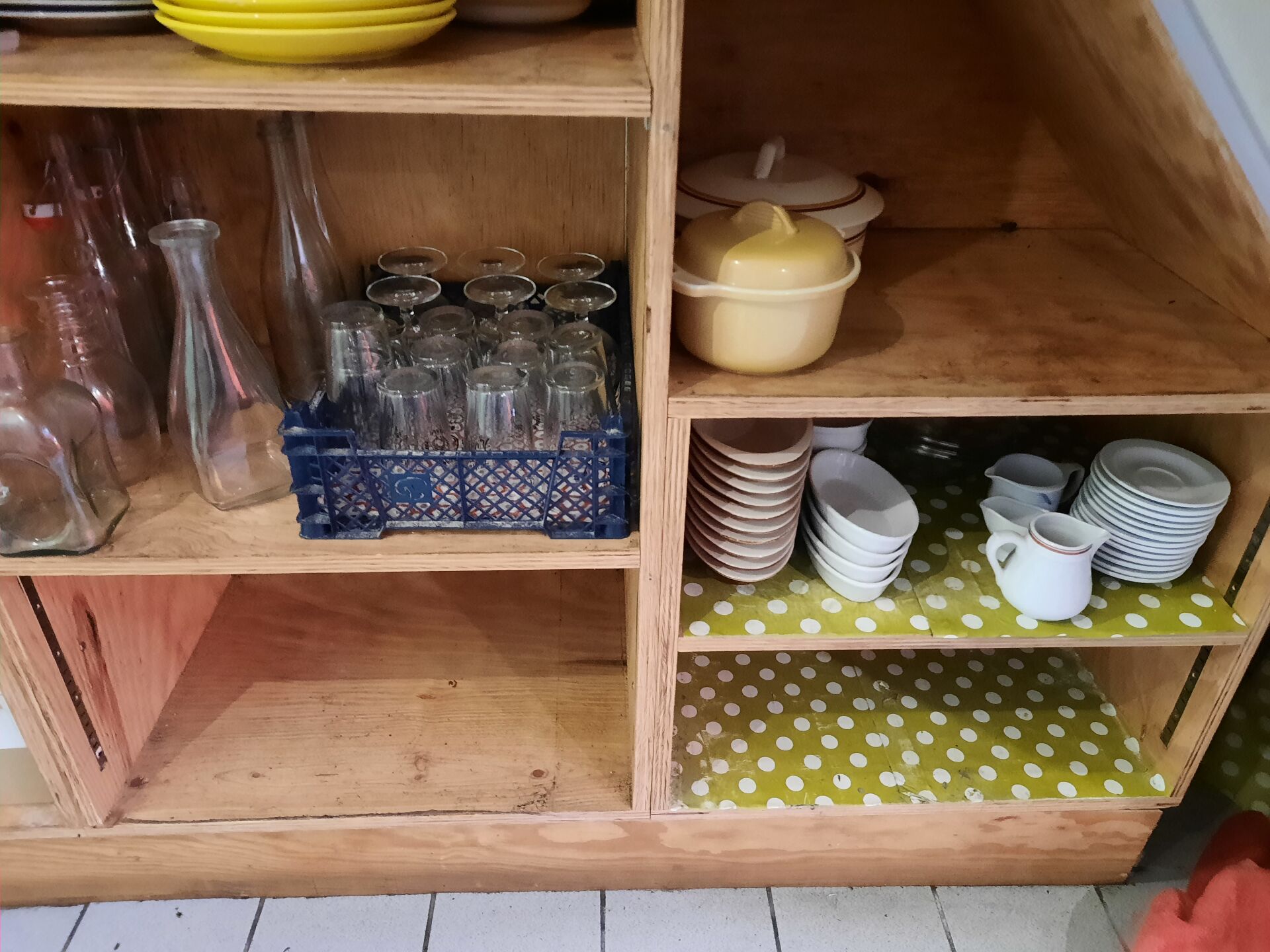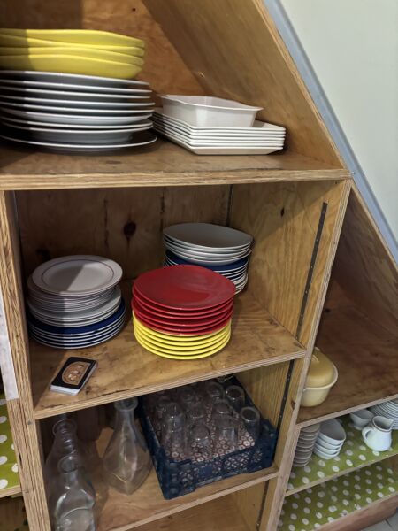 Environ 30 assiettes dépareillées Environ 20 verres dépareillés Environ 5 couverts en inox