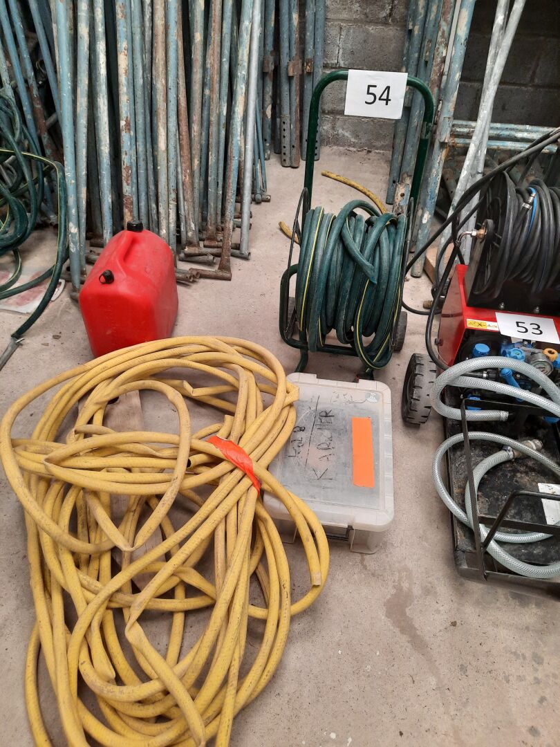 Dévidoir à tuyau d'eau On joint : 2nd tuyau jaune et accessoires