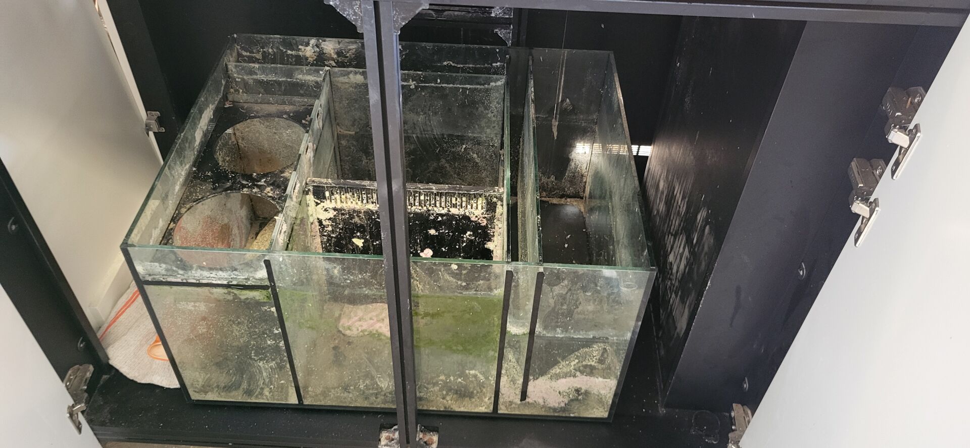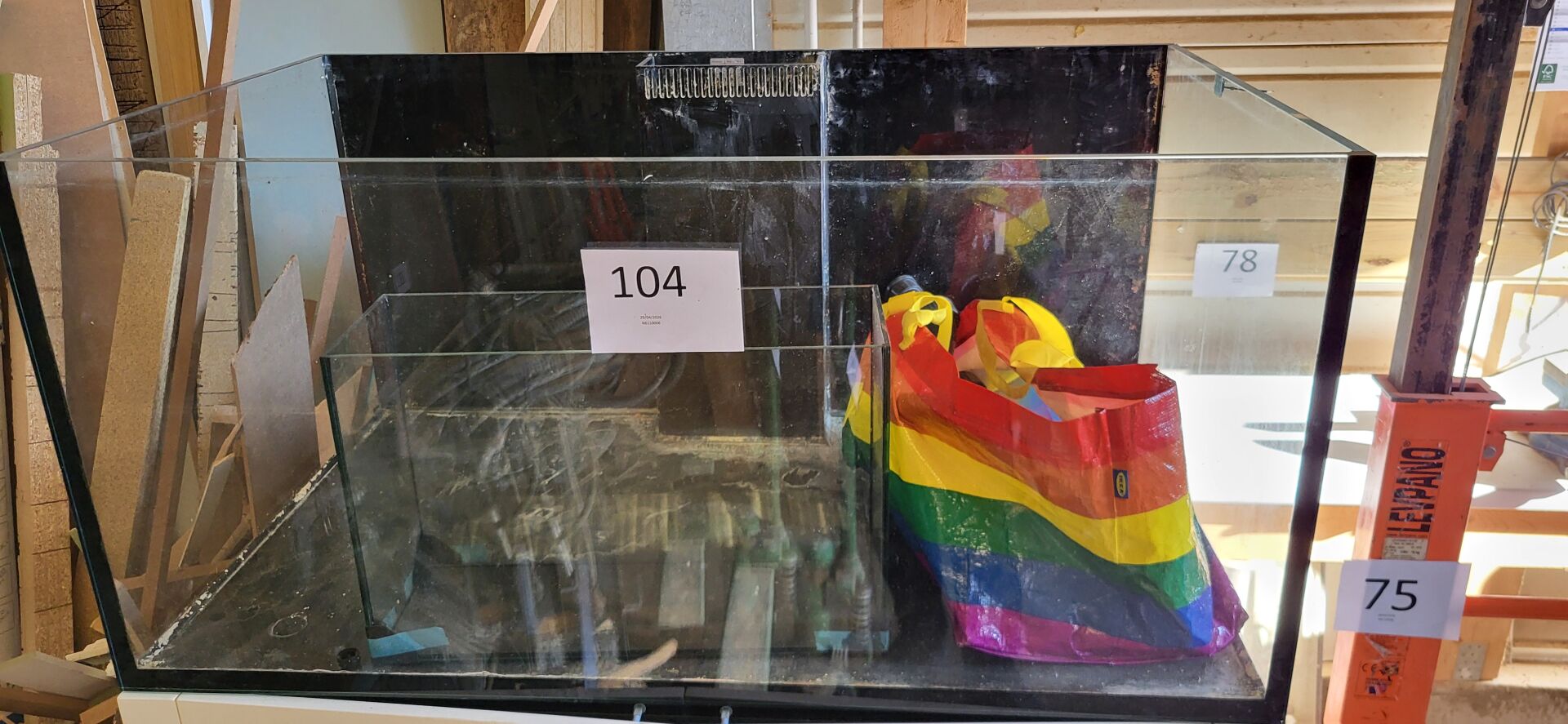 1 aquarium 700L, sur meuble mélaminé blanc130 x 75 x 160 cm (vidé)