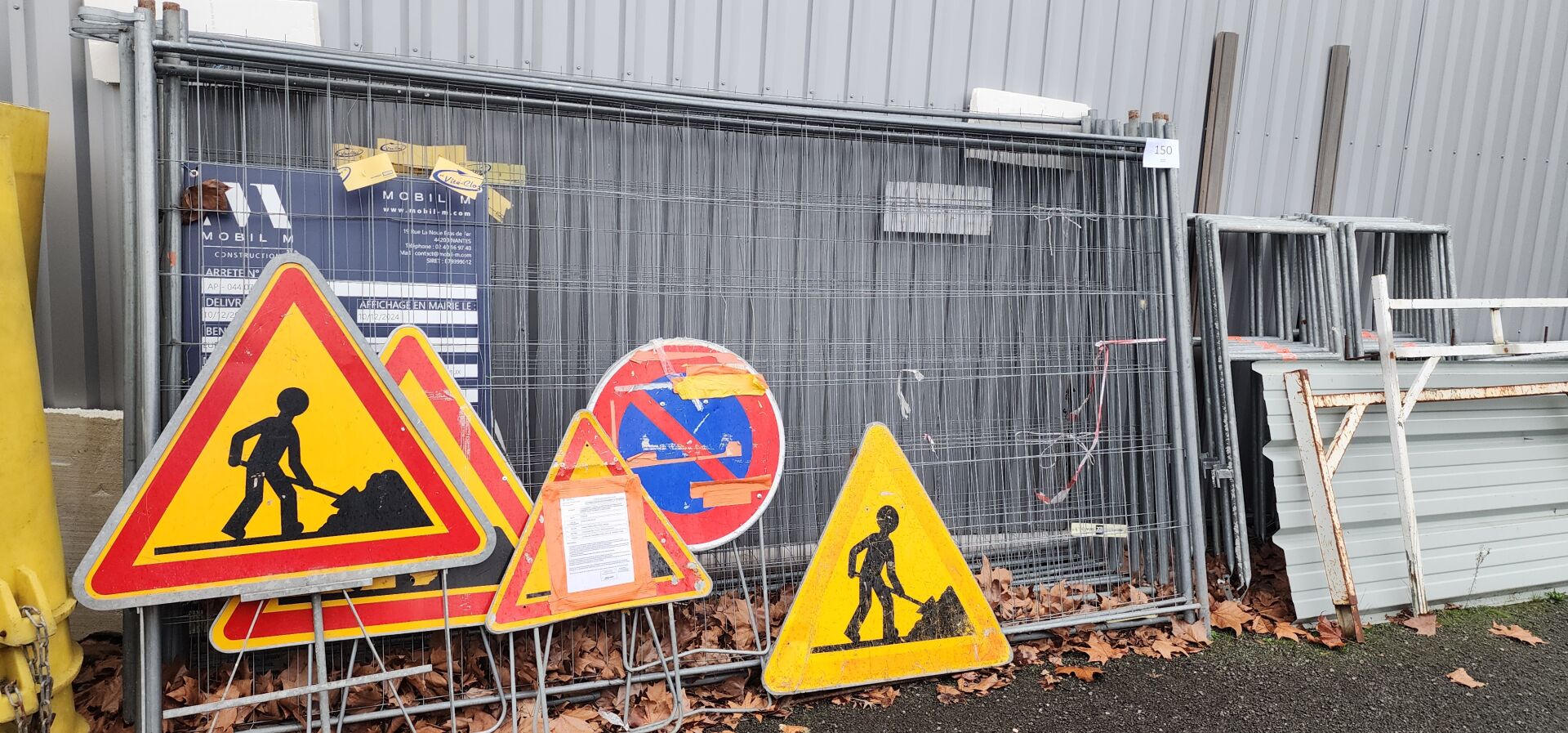 14 clôtures de chantier type HERAS 340 x 196 cm 4 panneaux de travaux + 10 pieds béton