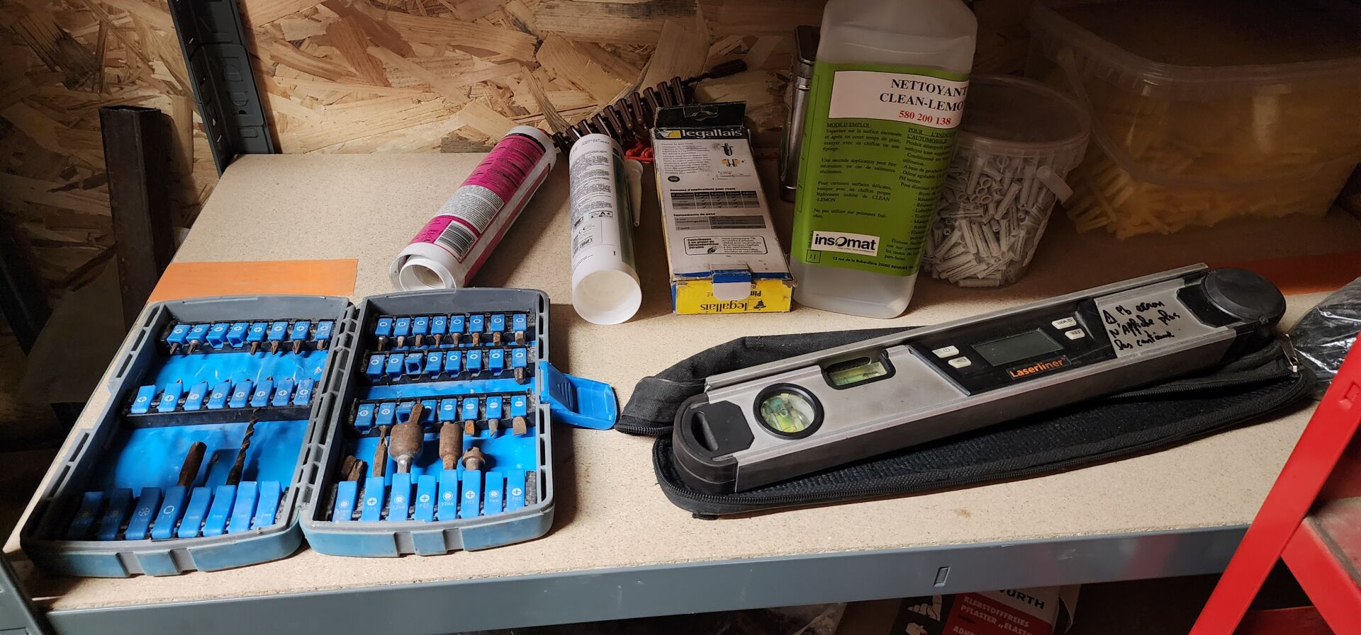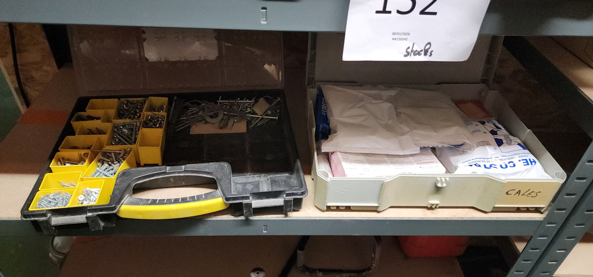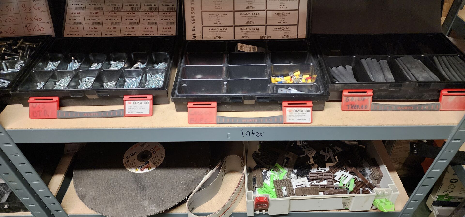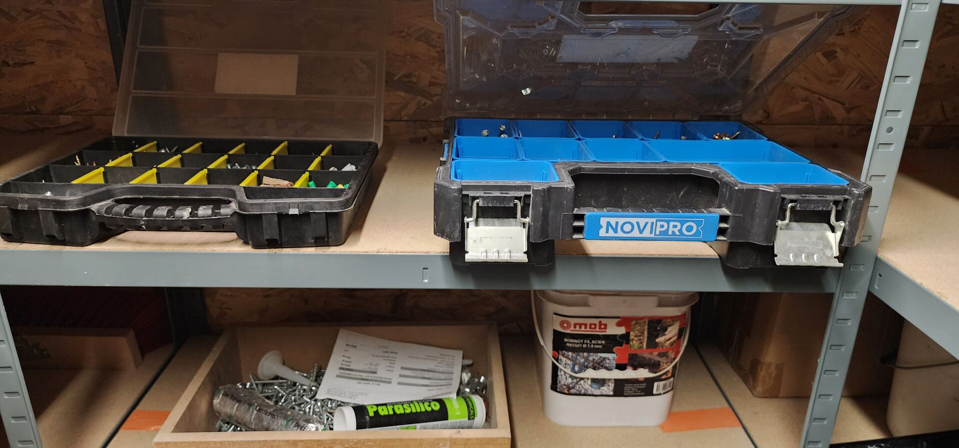 Dans un local : 1 lot de quincaillerie et de consommables divers comprenant : lames de scie, forets, disques, coffrets de visserie etc