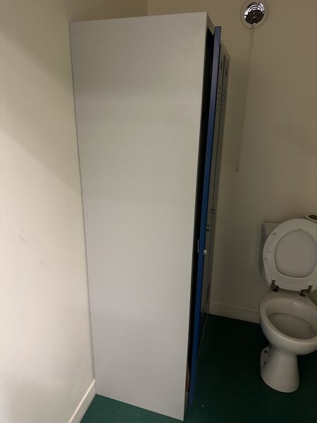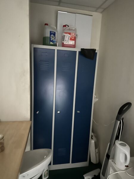 2 blocs de vestiaires métalliques 3 portes 89 X 50 X 180 cm 1 paperboard mobile 1 armoire à pharmacie