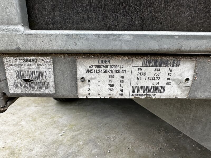 2 ESSIEUX PTAC : 750 KG / PV : 258 KG FIV AVEC NO DE FORMULE