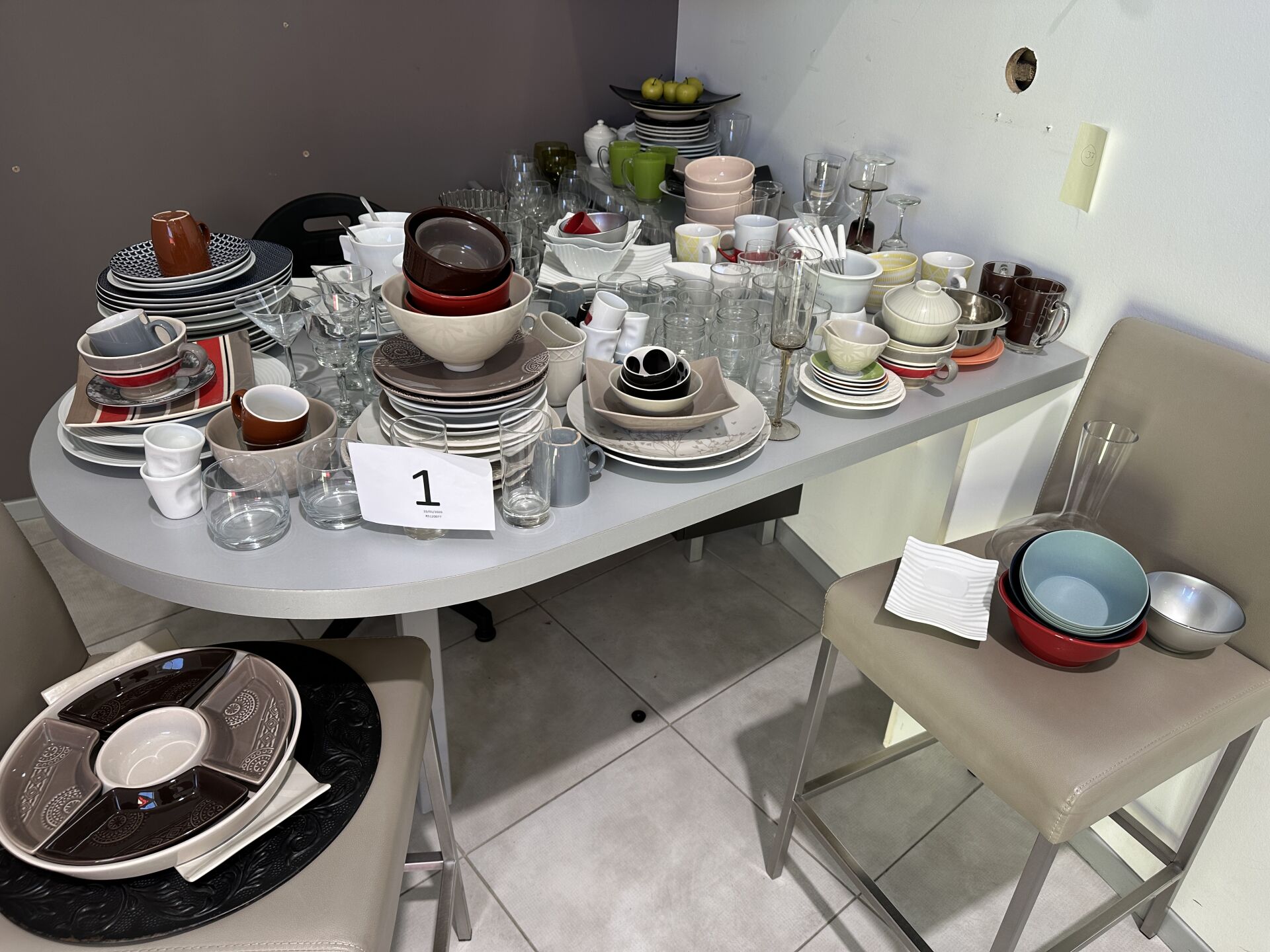 1 lot de vaisselle dont assiettes, verres à eau, verres à pied, tasses, bols...