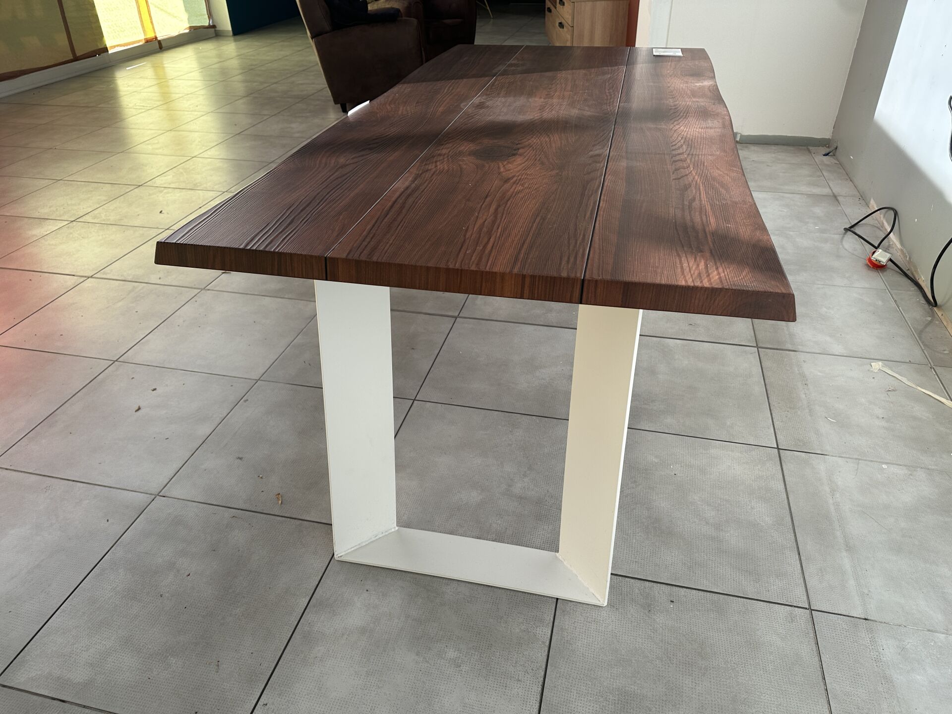 1 table BRIDGE WOOD (200 x 100 cm) chêne massif/piétement métal blanc