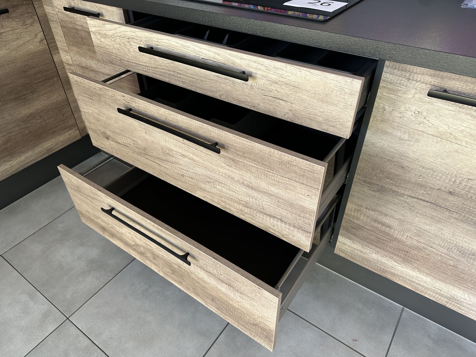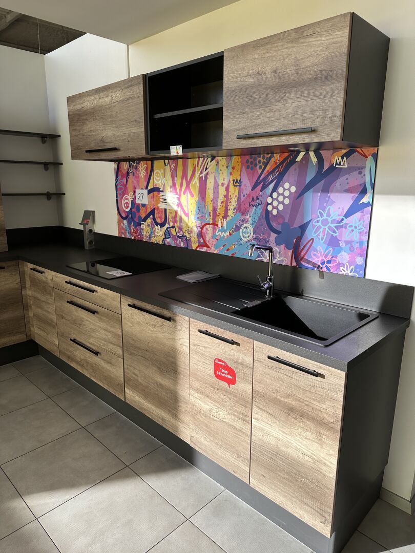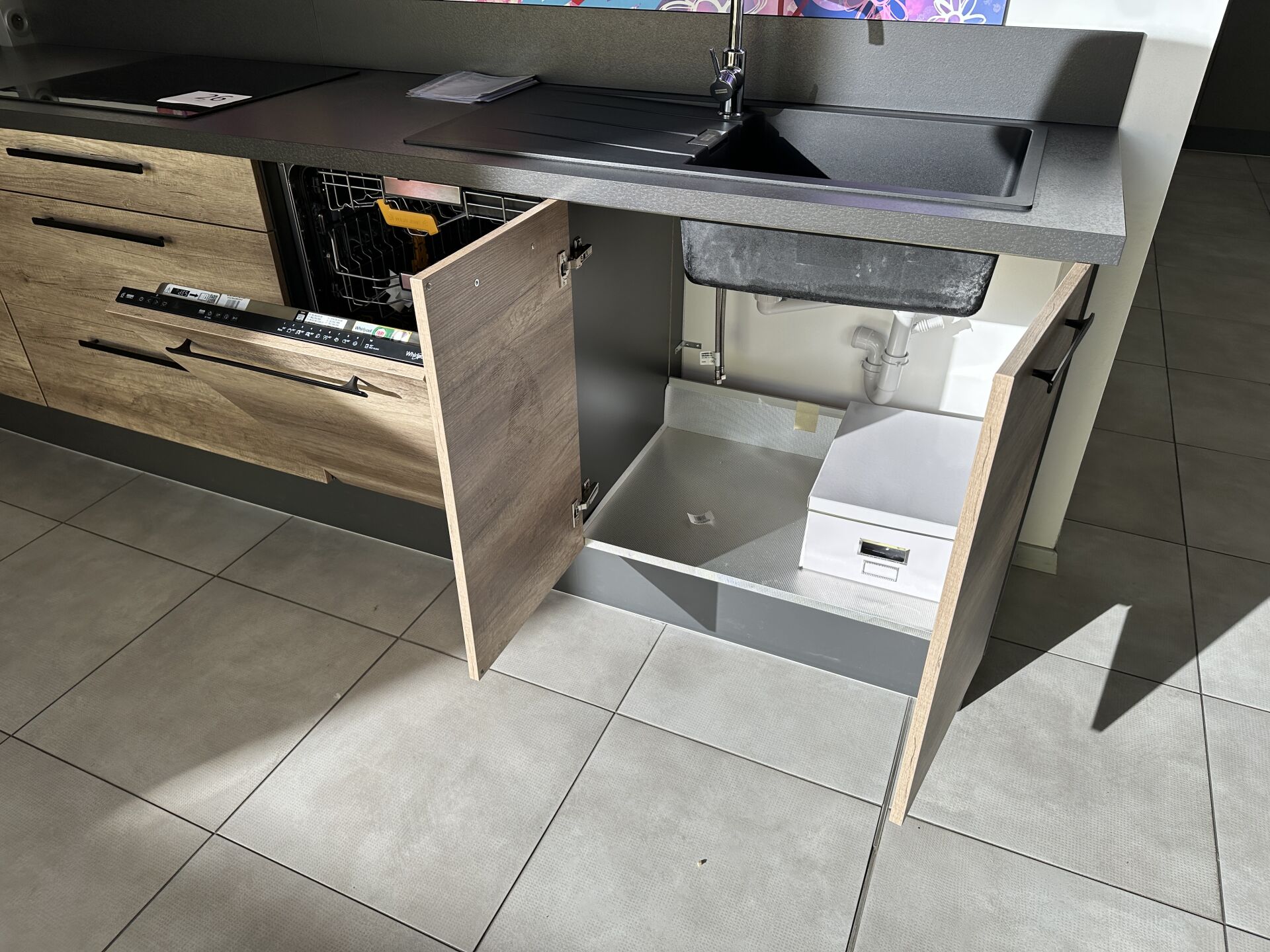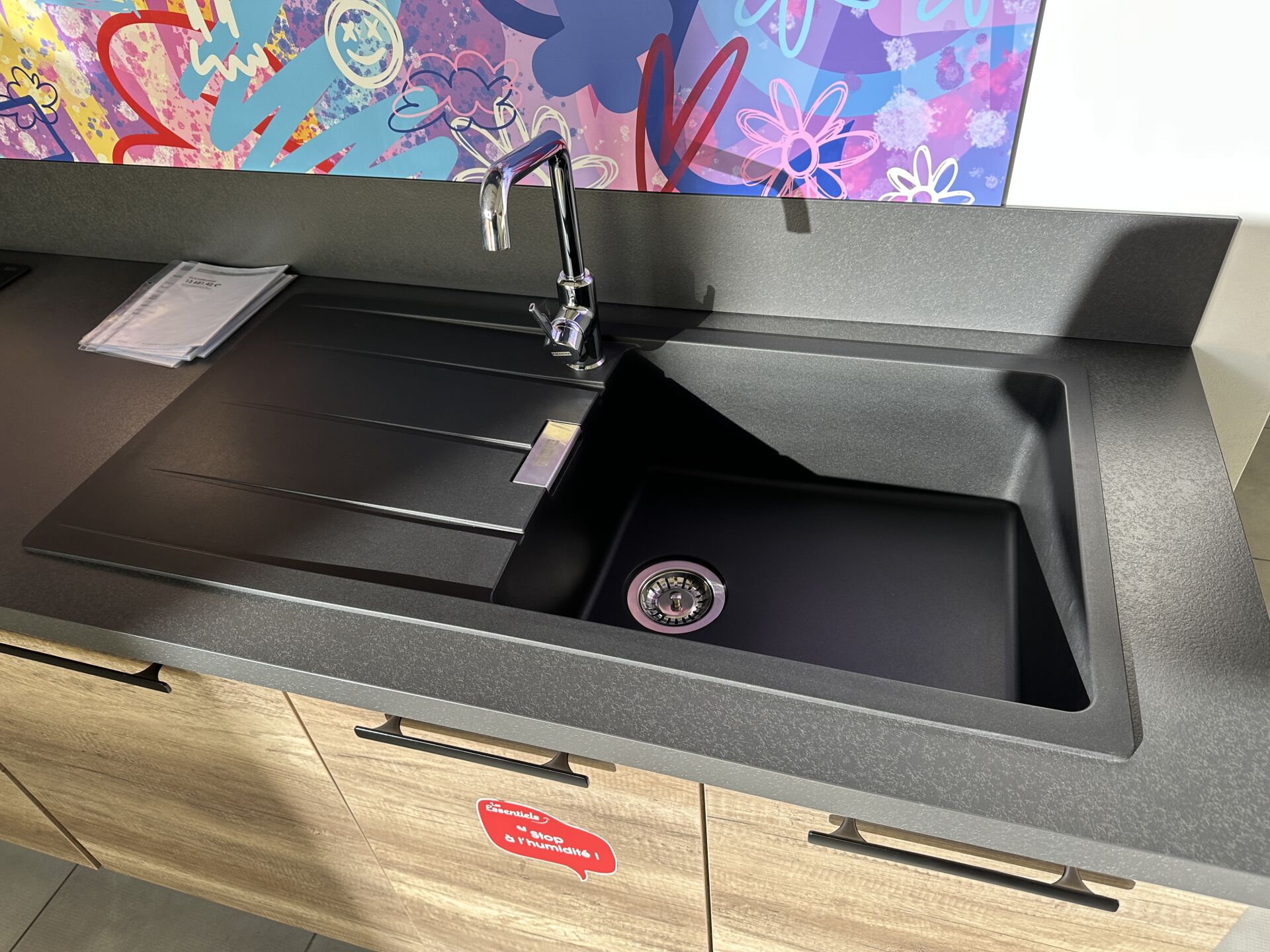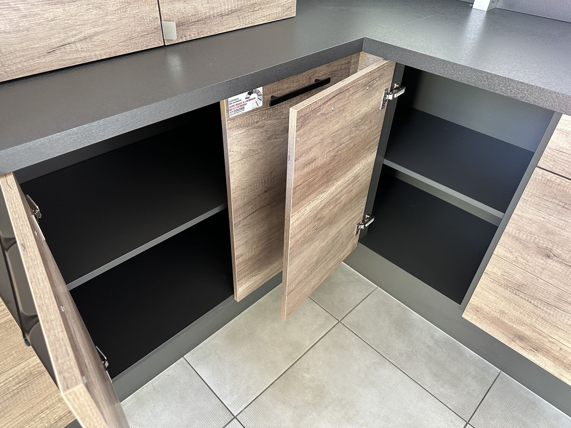 1 cuisine d'exposition TREND + WINOKA posée en angle mélaminé bois/noir avec évier 1 bac/1 égouttoir composite noir FRANKE et robinetterie FRANKE 345 x 282 cm, profondeur plan de travail 63 cm Prix de vente affiché TTC (sans électroménager) : 10.436 € Fiche détaillée disponible à l'étude. 1 suspension abat jour tôle noire laquée 1 hotte murale intégrée 90cm AIRFORCE M4056 INBOX inox 650 m3/h, Prix vente TTC affiché : 328 € 1 lave-vaisselle tout intégrable WHIRLPOOL W81HP42LSC 14 couverts, 42 dB, Prix vente TTC affiché : 839 € 1 réfrigérateur intégrable HOT¨POINT 210L S12A1D/HA1 Prix vente TTC affiché : 450 €