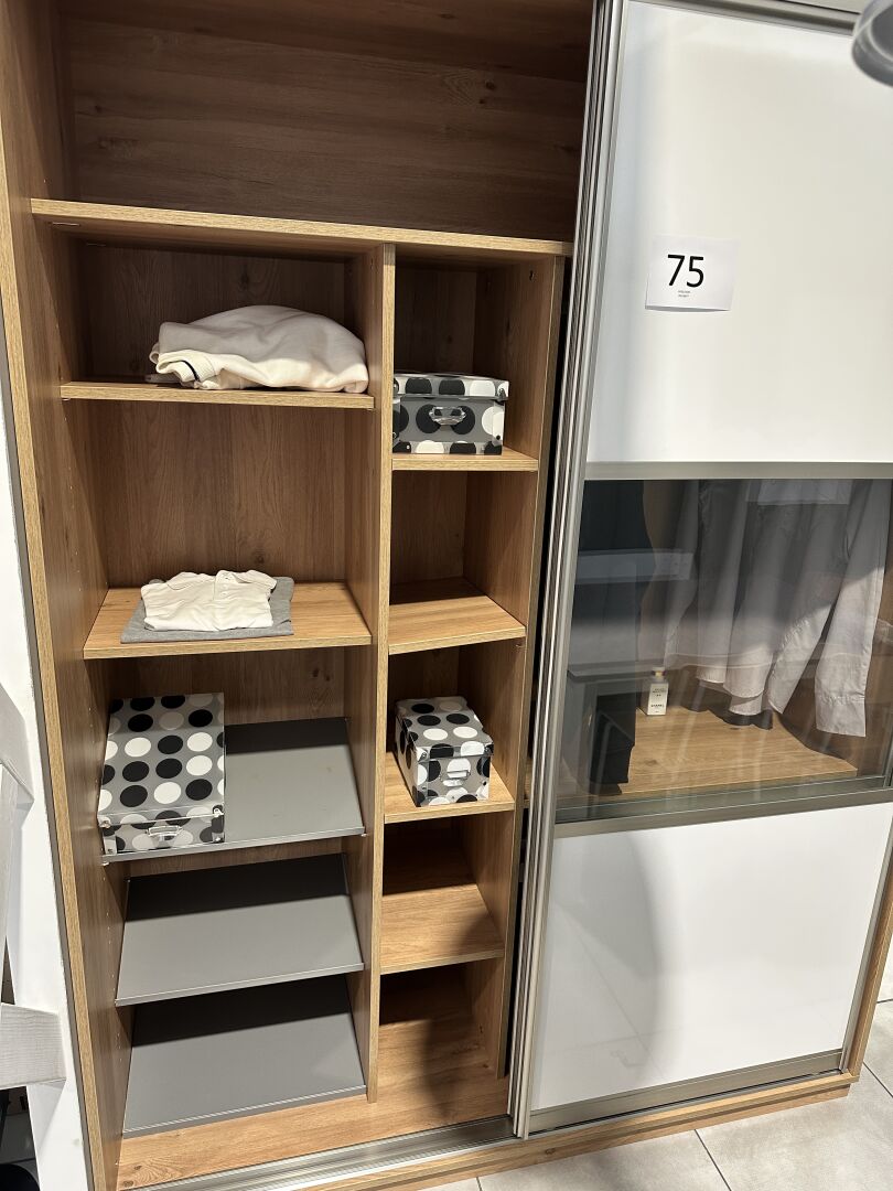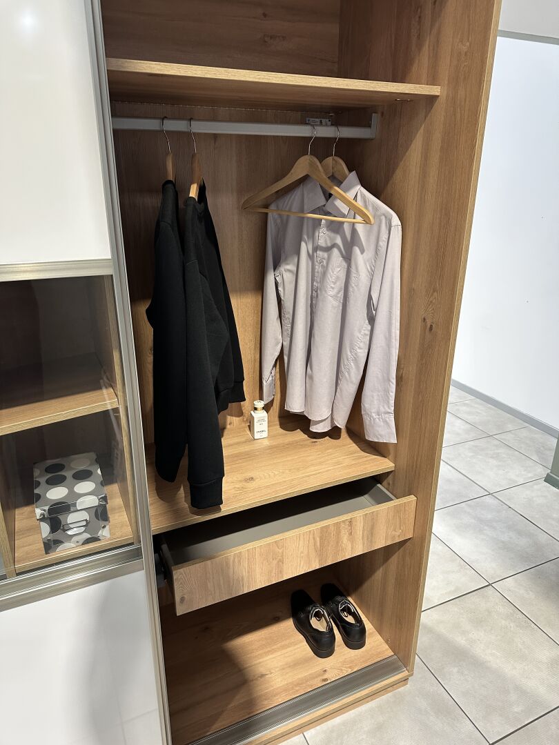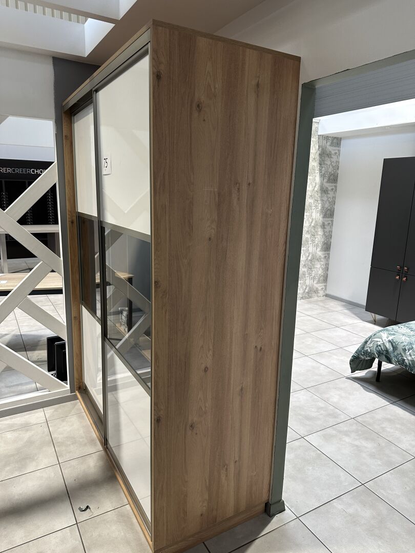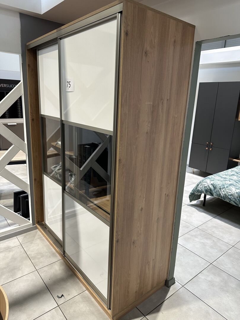 1 armoire-dressing TREND mélaminé "chêne honey" 164 x 65 x 220 cm , 2 portes coulissantes vitrées en partie centrale Prix de vente affiché TTC : 3.731 € Fiche détaillée disponible à l'étude.