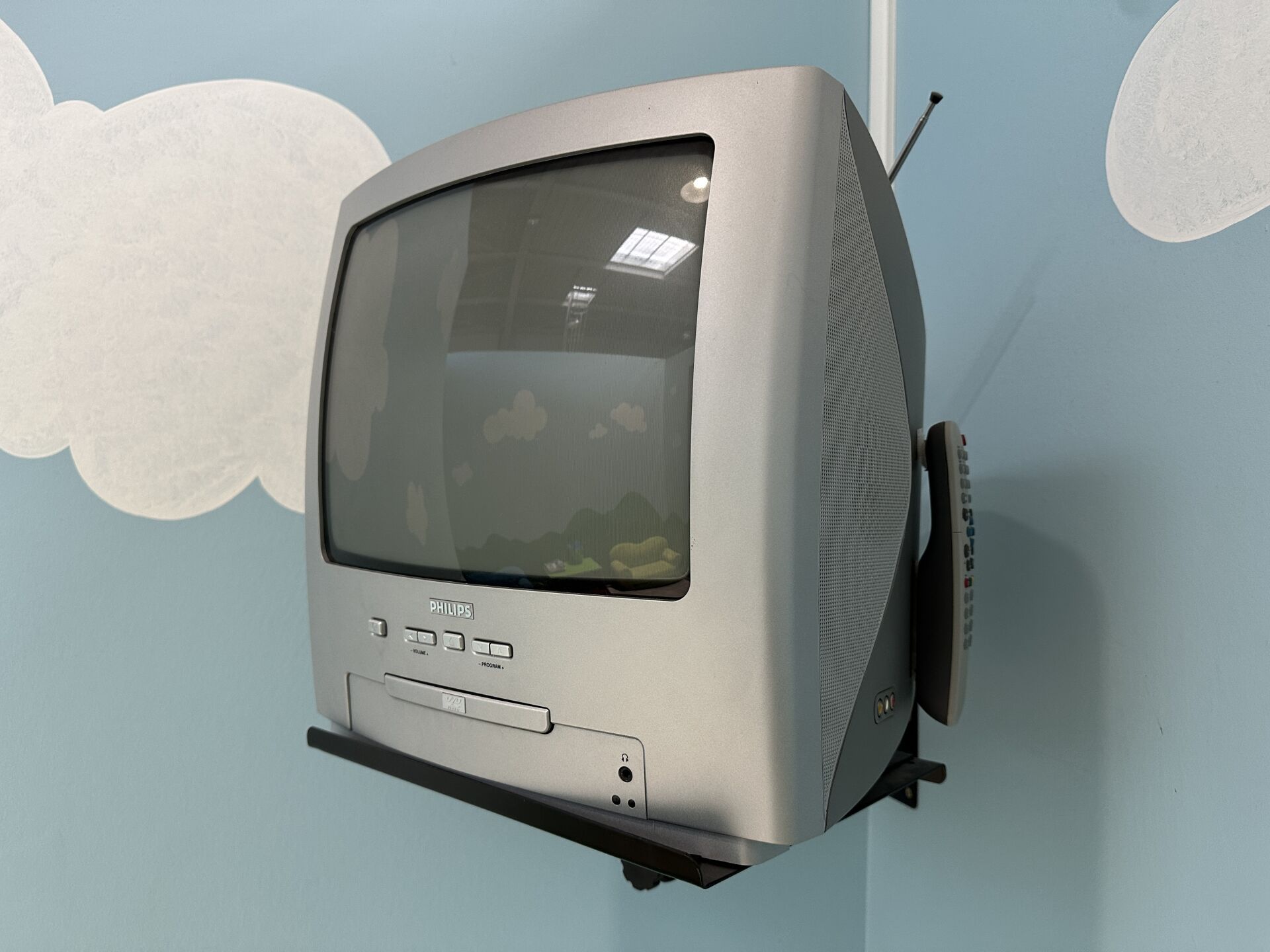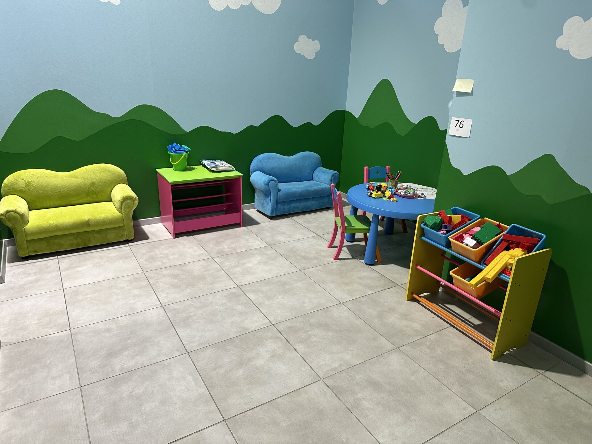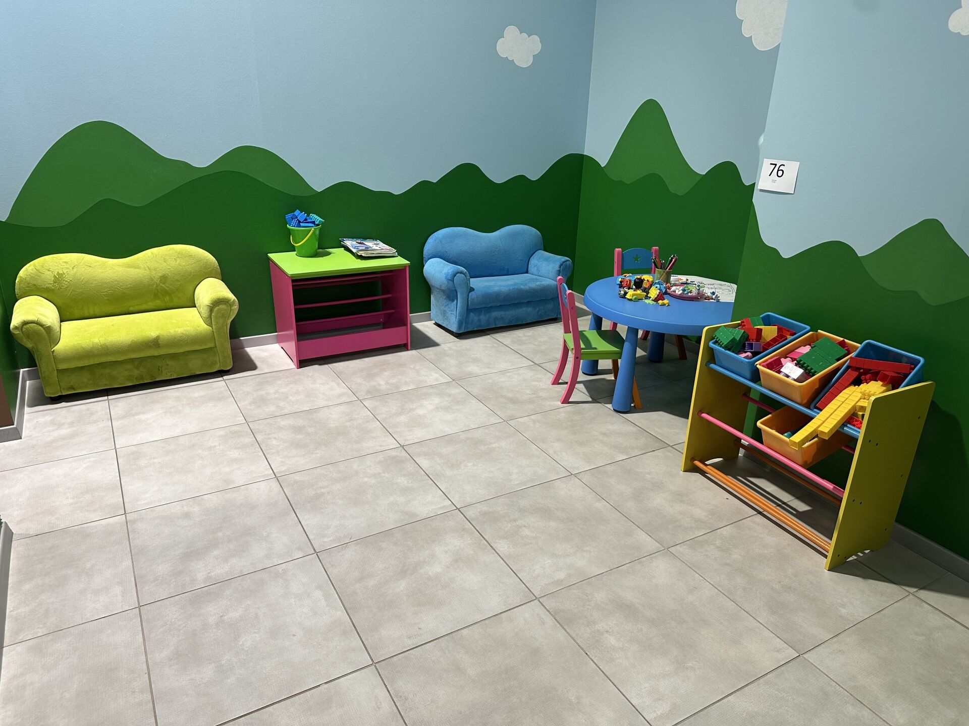 2 canapés pour enfant tissu dont 1 vert et 1 bleu, 1 pupitre pour enfant mélaminé vert et rose, 1 table ronde et 2 chaises pour enfants, 1 étagère mélaminé pour casiers, jeux et crayons 1 écran-lecteur DVD PHILIPS 14 PT 6107