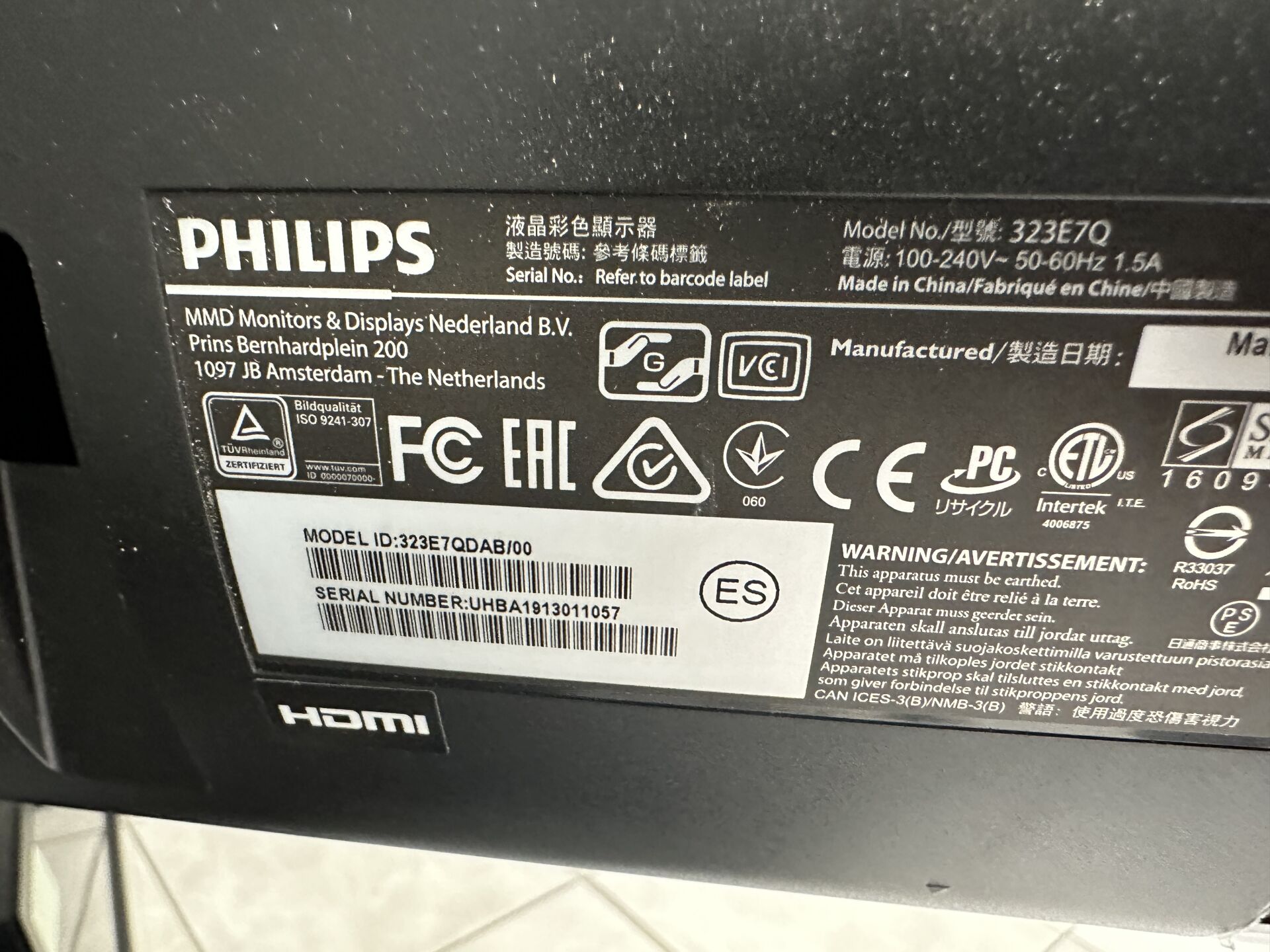 1 écran 32" PHILIPS 323 E7Q (2019) 32" sans cable d'alimentation ni télécommande
