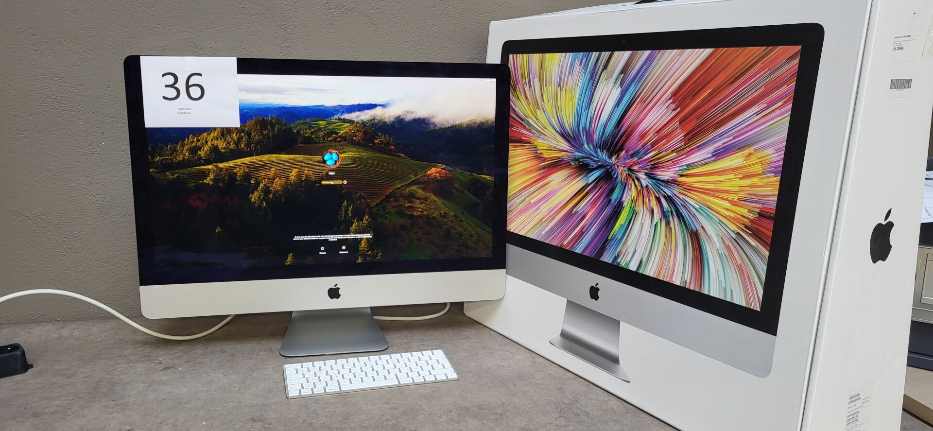 1 APPLE Imac 27" Retina 5K 3.8 GHz Intel Core i7 32 Go, AMD Radeo Pro 5500 XT 8G, n/s : H12FGJ9FPN7C, 2020 modèle A2115 ZDVT00296 dans sa boite , clavier, (mdp inconnu)