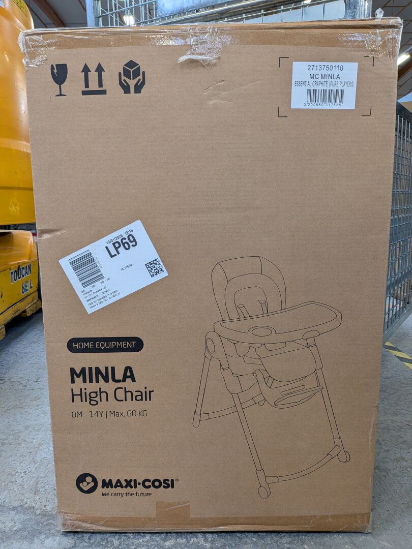 CHAISE HAUTE MAXI-COSI MINLA HIGHT CHAIR ESSANTIAL GRAPHITE (expédition sur devis) Lot issu de colis non réclamés : état de fonctionnement non garanti. (la première image est une image d'illustration)