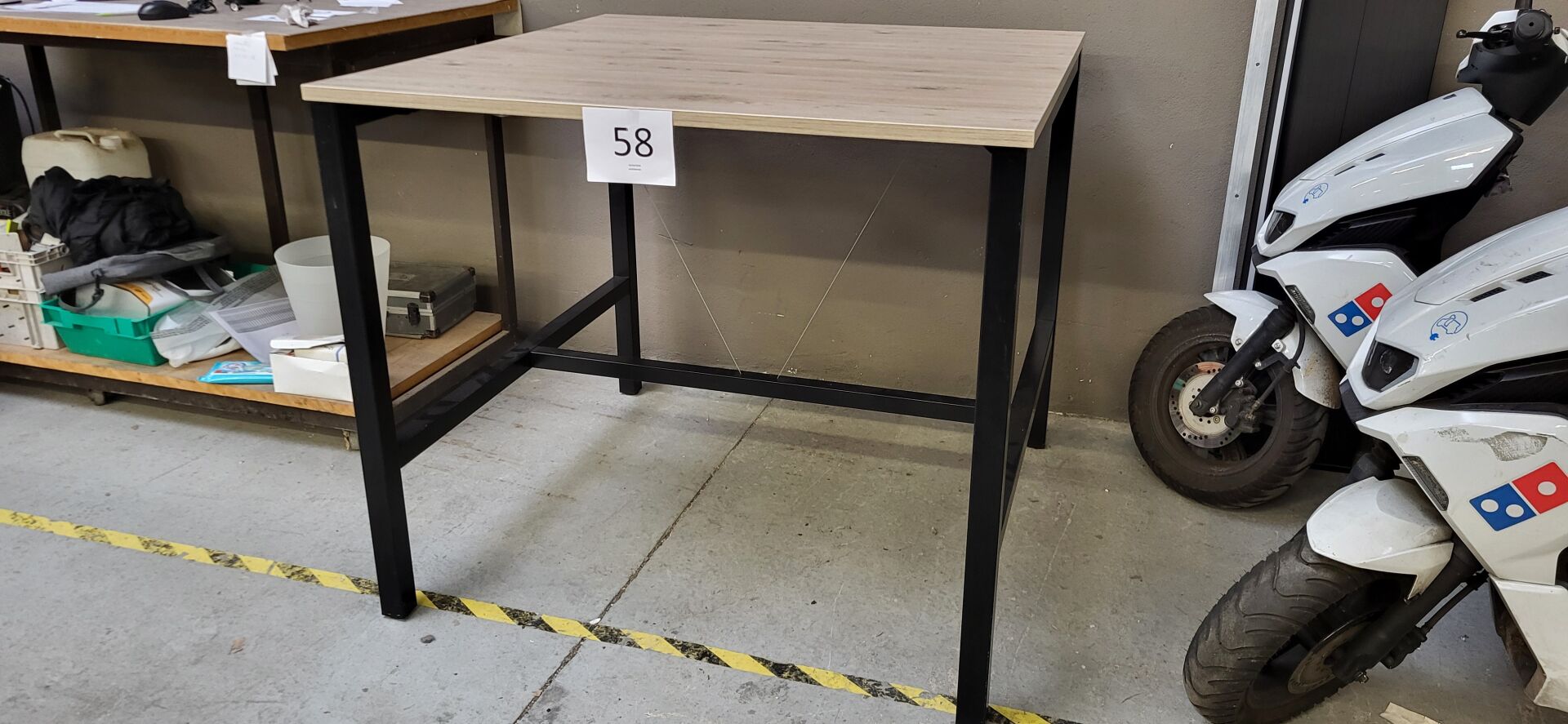 1 table haute plateau mélaminé façon bois piètement métal noir 120 x 120 x 105 cm