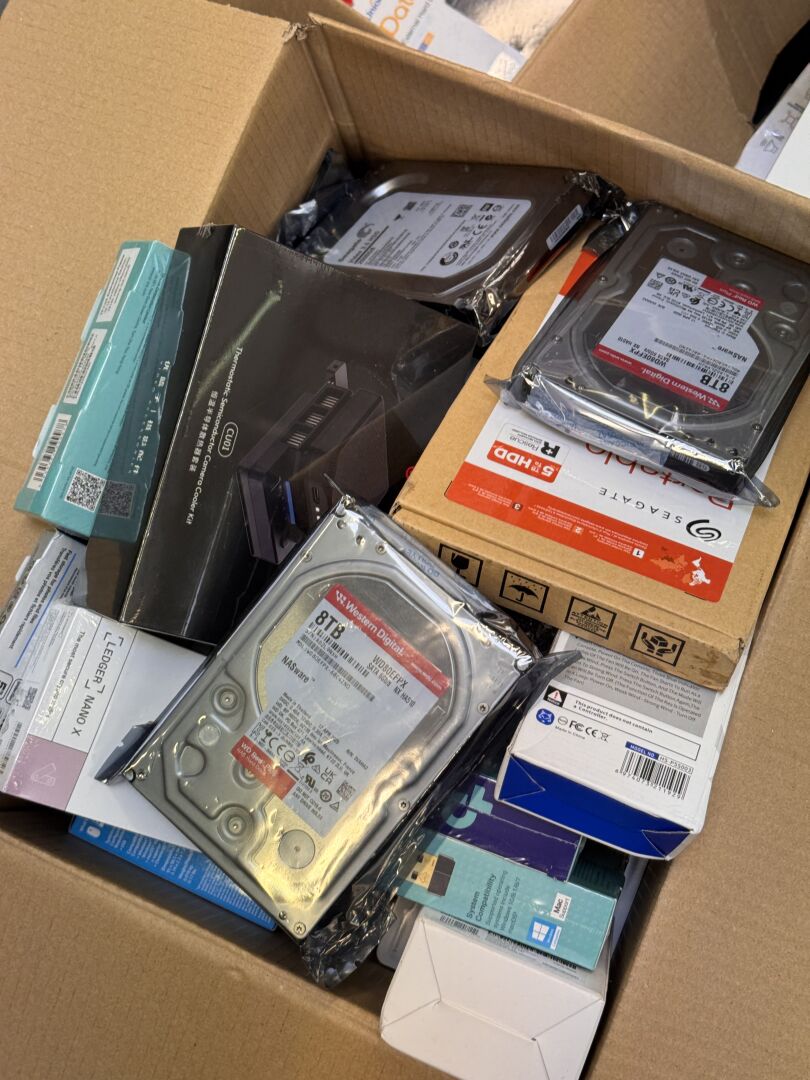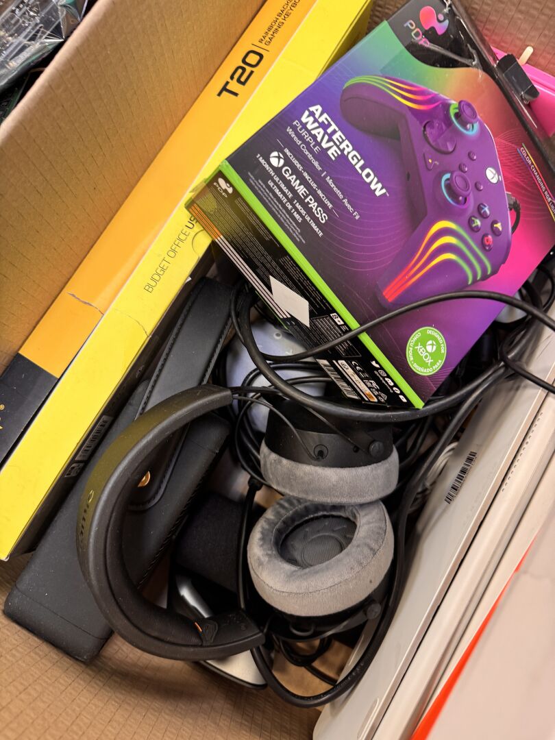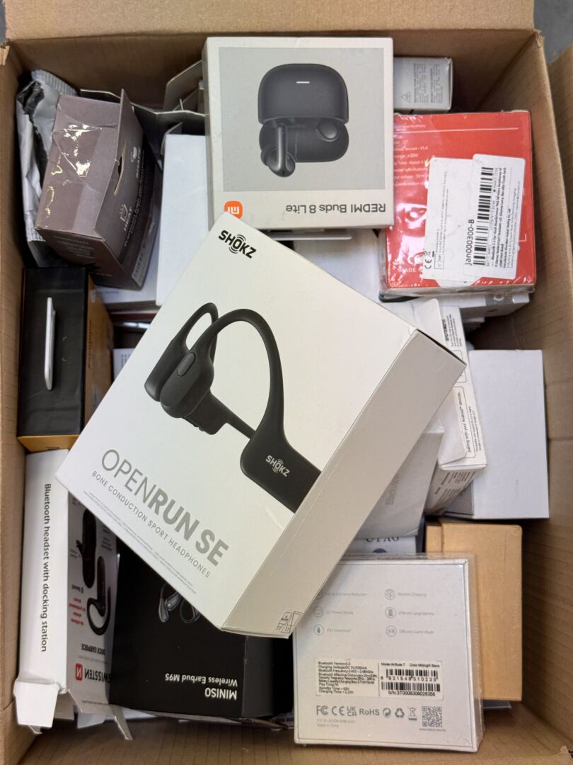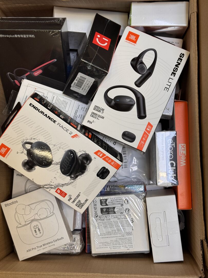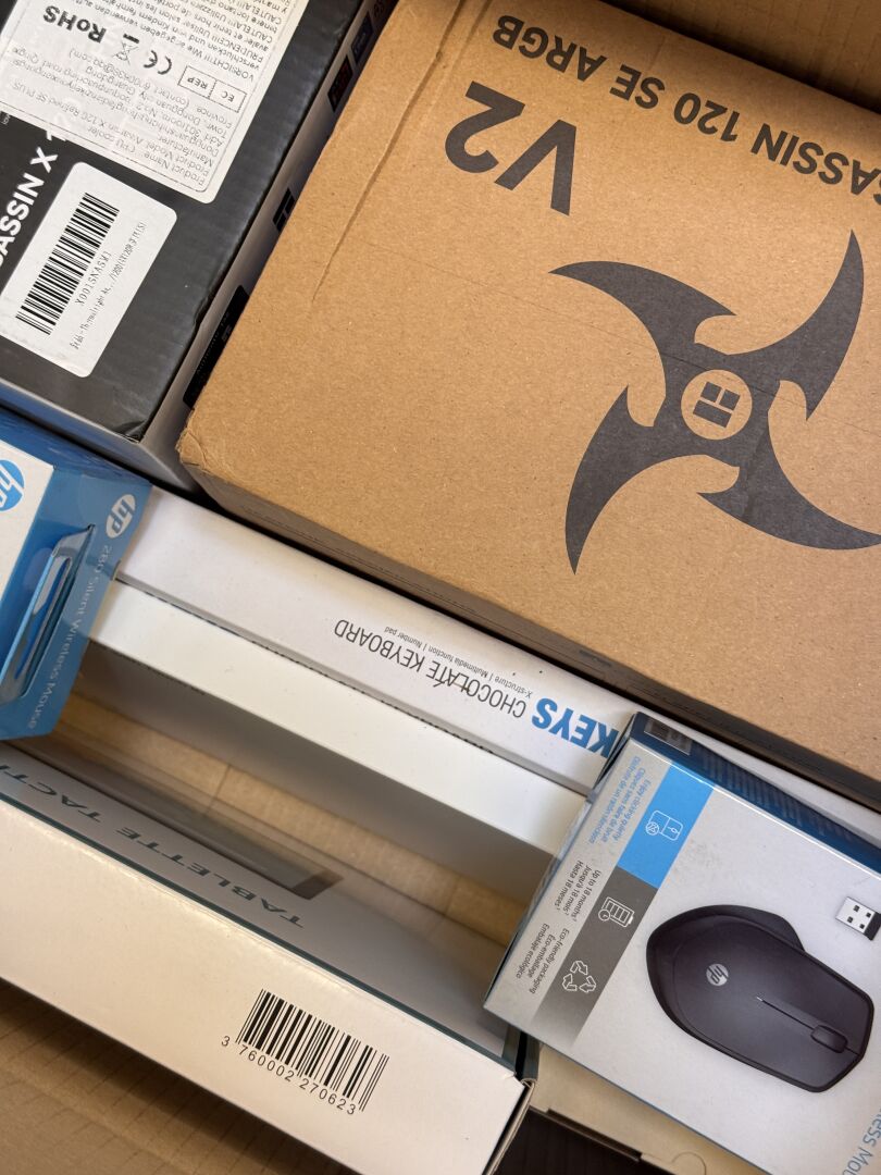 FORT ENSEMBLE DE MATERIEL INFORMATIQUE & MULTIMEDIA PETITS MATERIELS ELECTRONIQUES DONT ECOUTEURS, SSD, MEMOIRES, DISQUES, MANETTES, ACCESSOIRES CONSOLES, DVD (expédition sur devis) (dont produits avec traces d'usage) Lot issu de colis non réclamés : état de fonctionnement non garanti