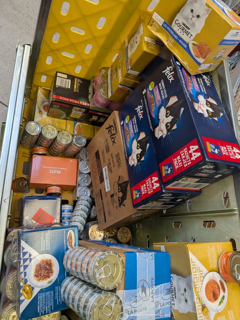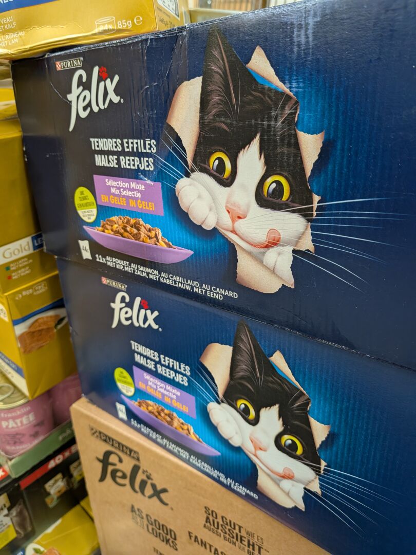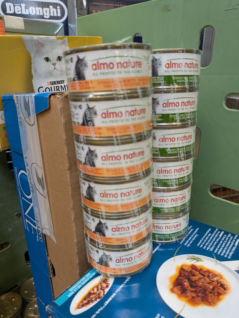 FORT ENSEMBLE DE PATEES ET MOUSSES POUR CHAT (environ 75 KG) DONT PURINA, FELIX, SHEBA, FRANKLIN, NATURAL HFC (expédition sur devis) Lot issu de colis non réclamés : l'acheteur fera son affaire personnelle des DLUO éventuellement dépassées