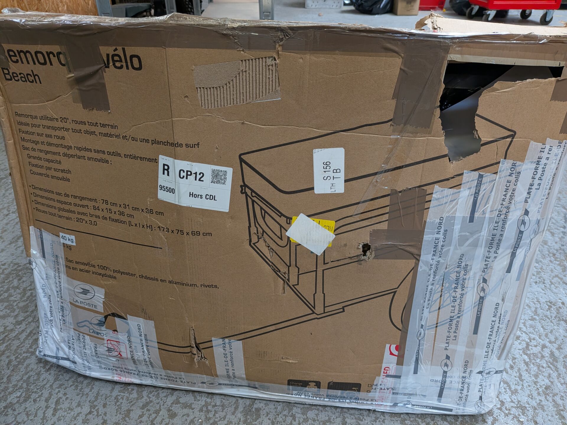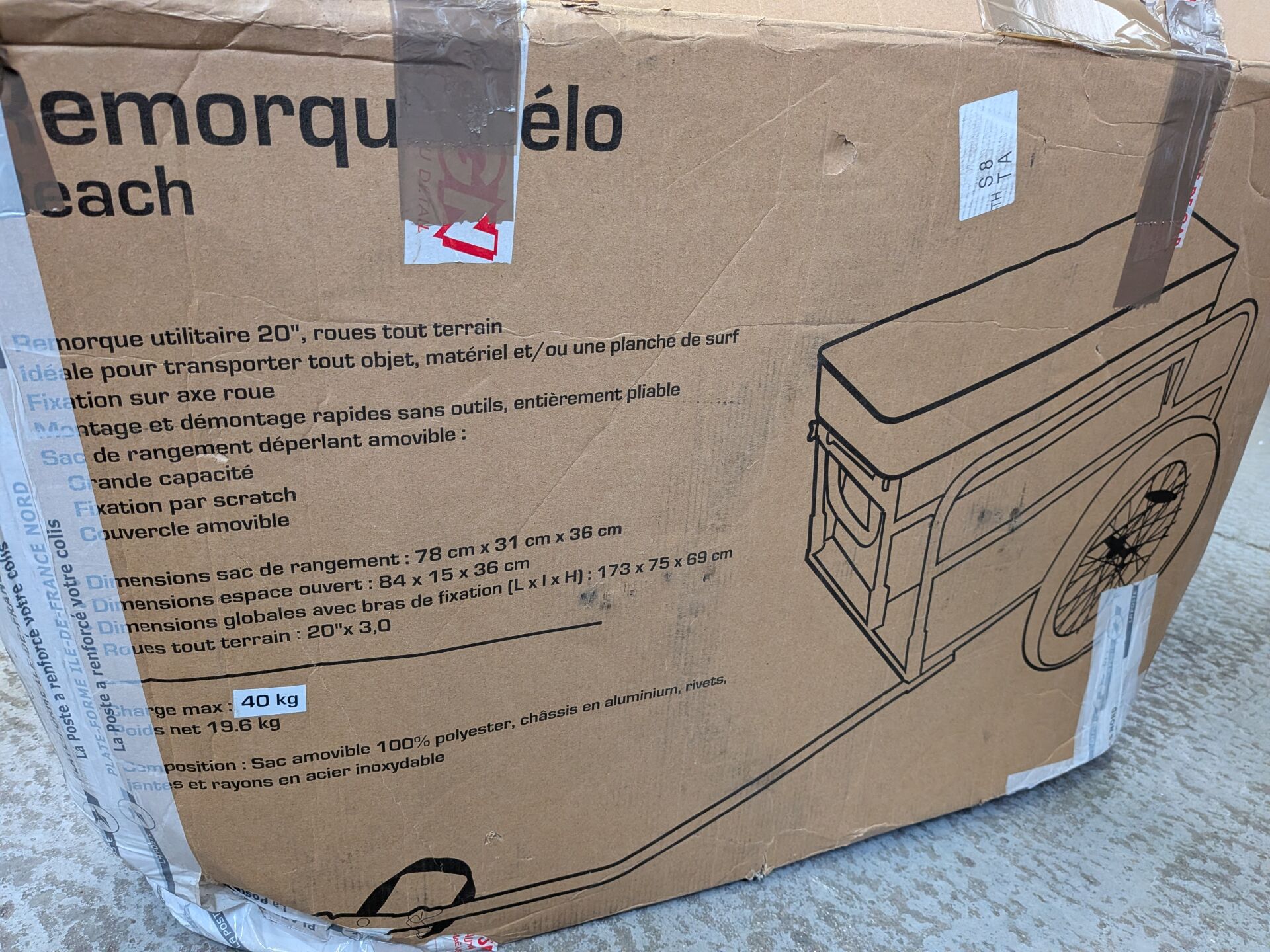 REMORQUE POUR VELO BIKE ORIGINAL BO BEACH DIMENSIONS DE RANGEMENT 78X31X36CM (expédition sur devis) Lot issu de colis non réclamés : état de fonctionnement non garanti.(la première image est une image d'illustration)
