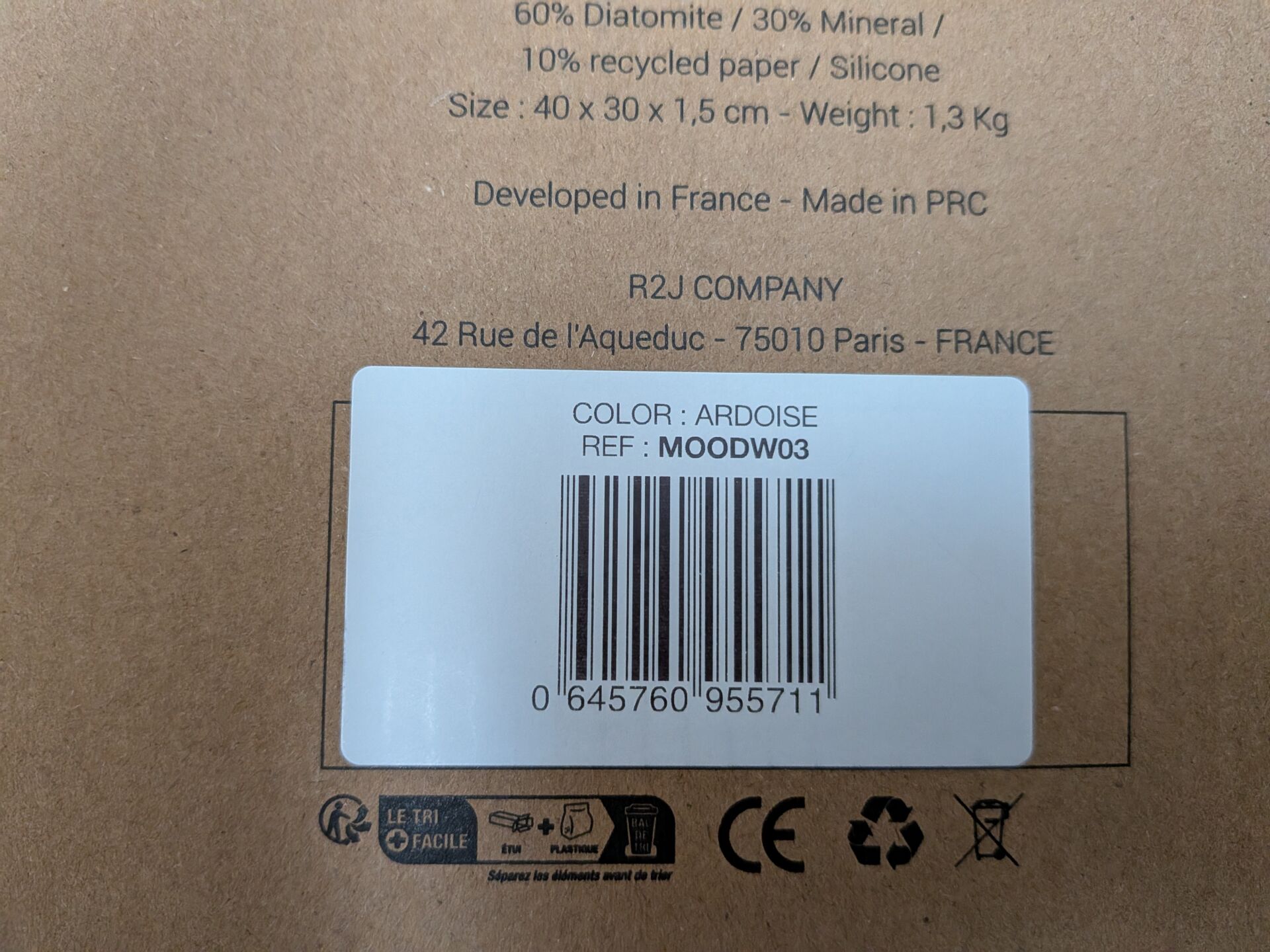 2 TAPIS DE BAIN EN DIATOMITE MOOPZ 2XL ARDOISE + TAPIS EGOUTTOIR EN DIATOMITE MOOPZ MOODW03 ARDOISE (expédition sur devis) Lot issu de colis non réclamés : état de fonctionnement non garanti.