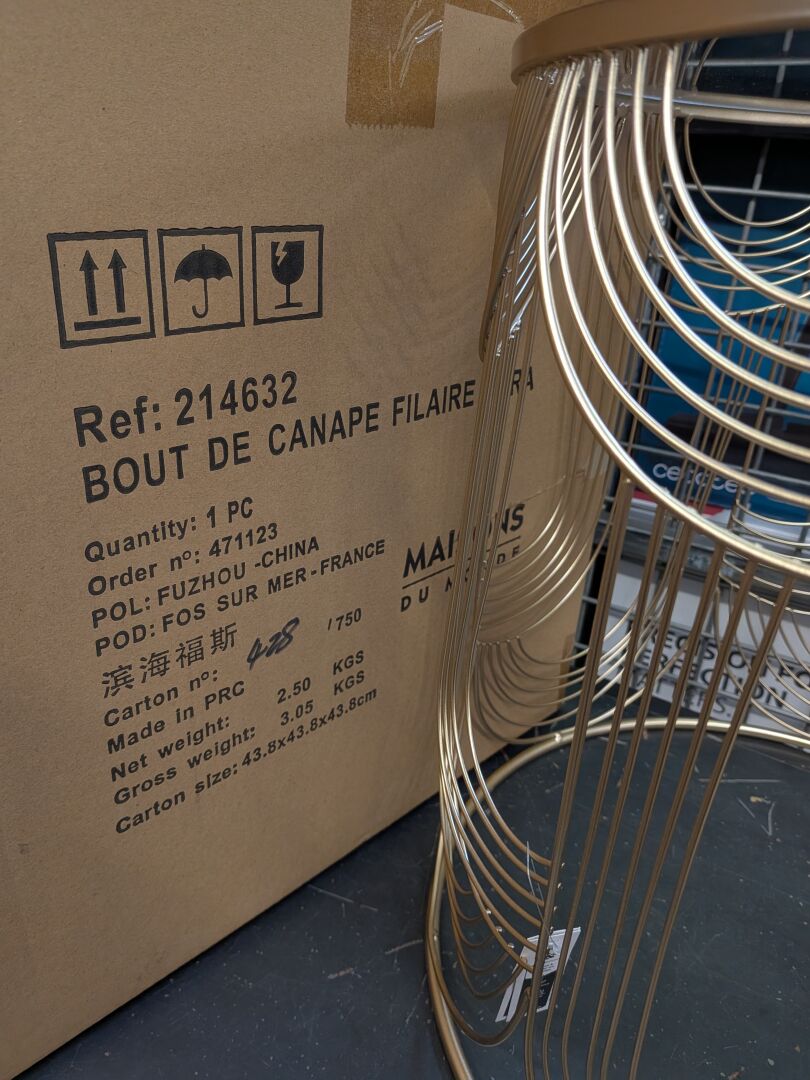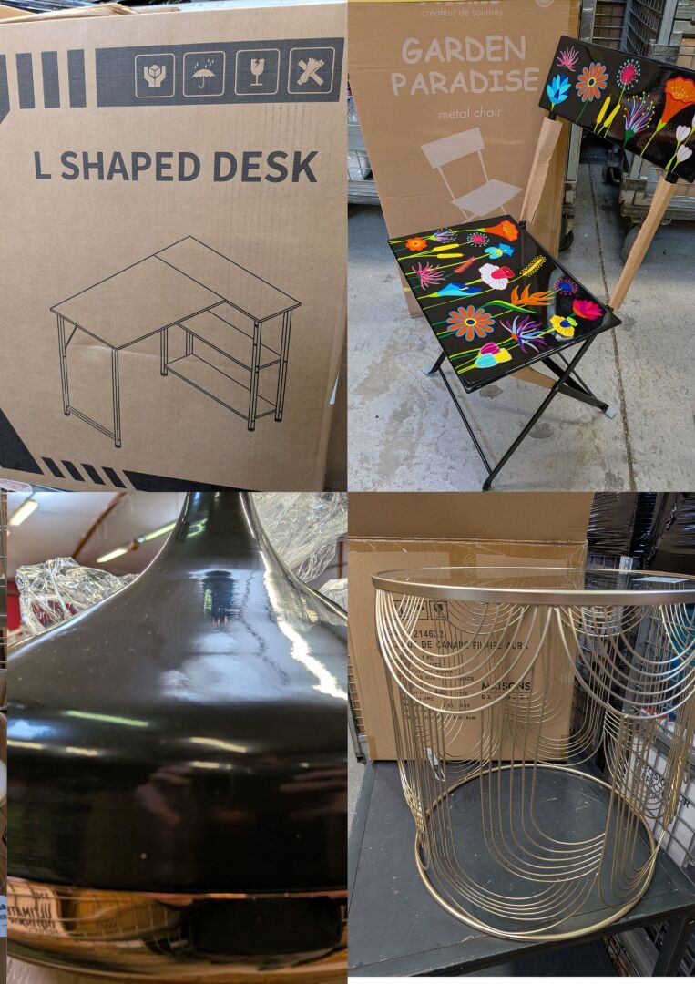 FORT ENSEMBLE DE PETITS MOBILIERS ET DECORATIONS (environ 1m3) DONT LUMINAIRE, TABLE BASSE RONDINS, BOUT DE CANAPE, CAISSE DE RANGEMENT, BUREAU, CHAISE PLIANTE METAL, LIT, CANAPE, CHAISE GAMING / SONGMICS, VEVOR, PYLONES, COLESHOME, IKEA, MAISONS DU MONDE, LA REDOUTE, HOME DECO FACTORY (expédition sur devis) Lot issu de colis non réclamés : état de fonctionnement non garanti.