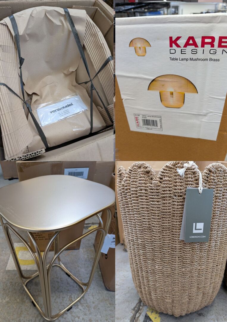 FORT ENSEMBLE DE PETITS MOBILIERS ET DECORATIONS (environ 1m3) DONT CHAISE, BOUT DE CANAPE, PANIER, HAMAC POUR CHAT, MEUBLE DE RANGEMENT, LUMINAIRE, TABLE A REPASSER, LAMPE DE TABLE, MIROIR / VERTBAUDET, LOBERON, LA REDOUTE INTERIEURS, KARE DESIGN, TAURUS, MAISONS DU MONDE, DELINIA, IKEA, SWING (expédition sur devis) Lot issu de colis non réclamés : état de fonctionnement non garanti.