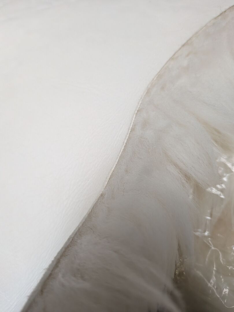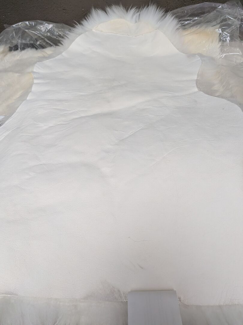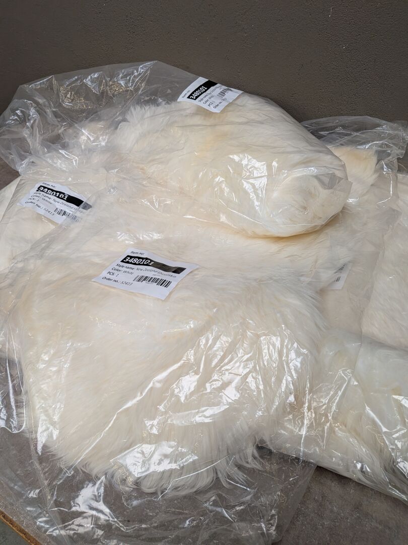 4 FOURRURES DE MOUTON BLANC CREME DIMENSION MOYENNE DE 90X55CM (expédition sur devis) Lot issu de colis non réclamés : état de fonctionnement non garanti.