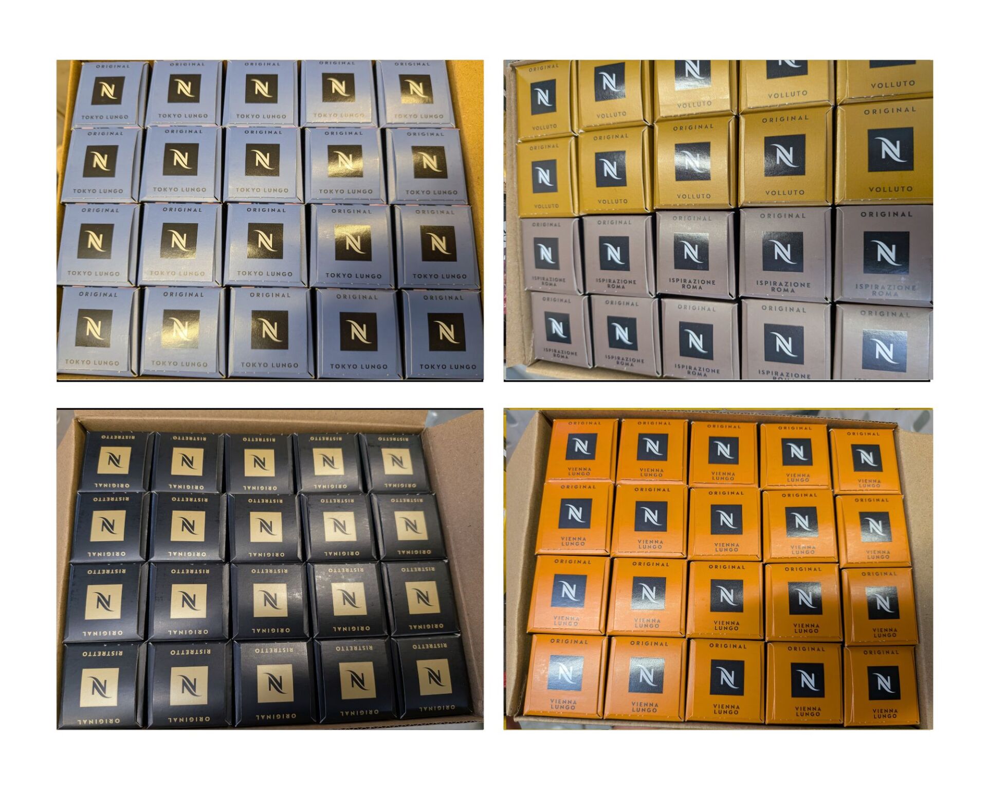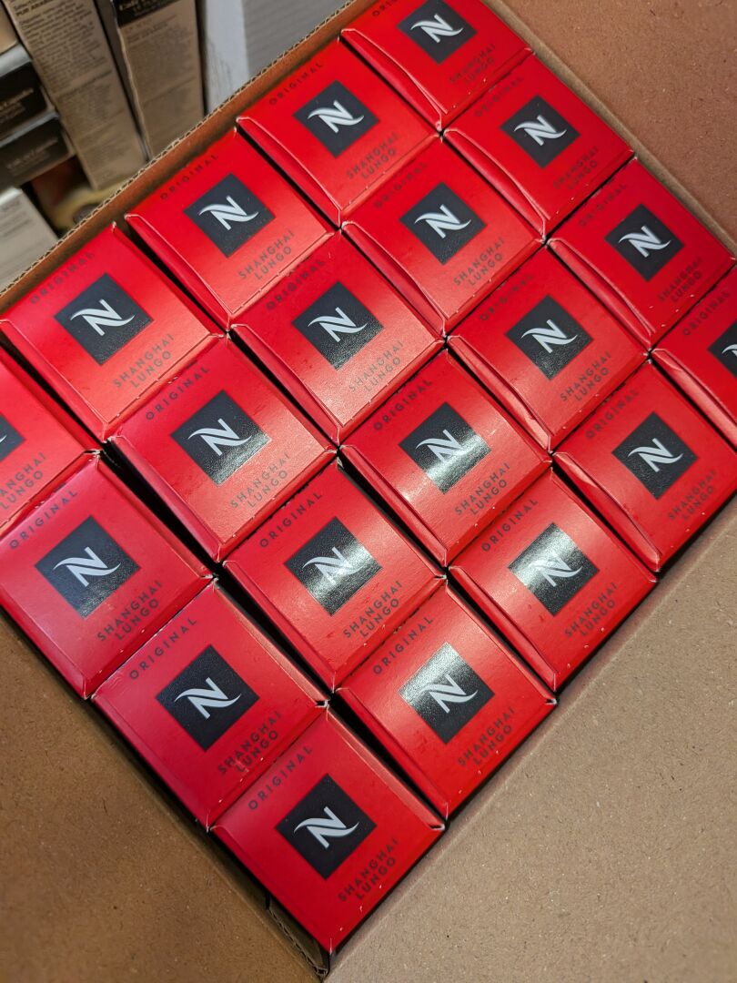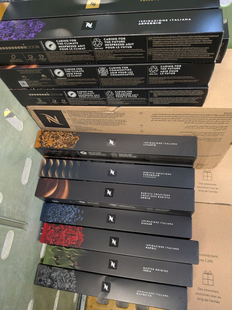 ENVIRON 45KG DE CAPSULES NESPRESSO CAFE (environ 46 KG) DONT COLOMBIA ORGANIC, CARAMELLO, NAPOLI, INDIA, VANIGLIA, ETHIOPIA, VOLLUTO, VIENNA LUNGO (expédition sur devis) Lot issu de colis non réclamés : l'acheteur fera son affaire personnelle des DLUO éventuellement dépassées
