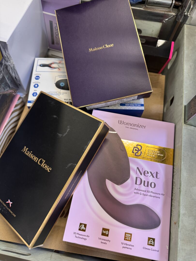 IMPORTANT LOT D'ACCESSOIRES ET JEUX POUR ADULTES DONT SATISFYER, MAISON CLOSE, WOMANIZER, LOVENSE (expédition sur devis) Lot issu de colis non réclamés : état de fonctionnement non garanti.