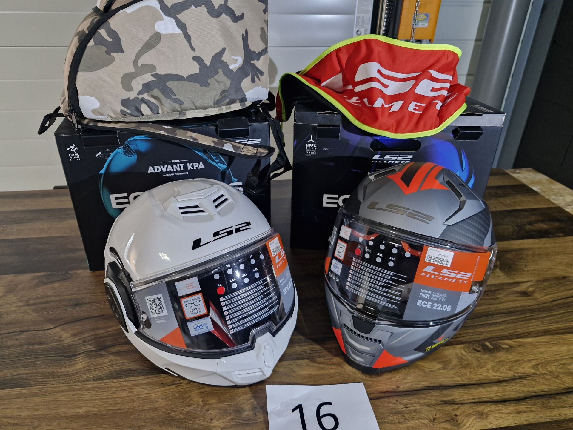 1 casque de moto LS2 modèle : FF811 Vector 2 Splitter, couleur Matt Titanium Red, taille XL, dans sa housse avec son carton (état neuf) 1 casque de moto LS2 modèle : FF906 Advant Solid, couleur White, taille XL, dans sa housse, 1 sac à doc porte casque couleur: camouflage kaki, avec son carton (état neuf) EXPEDITION POSSIBLE (ce lot chez vous en France métropolitaine pour 44€)