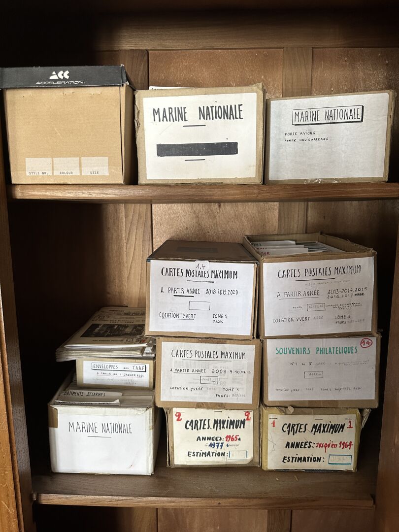 DANS LA CHAMBRE 1 Réunion de dix petits cartons contenant des cartes "Maximum" et enveloppes de la Marine Nationale.