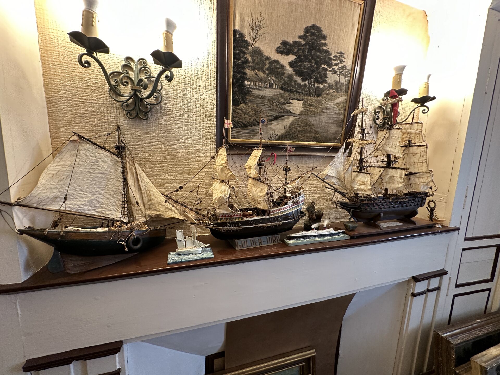 DANS LA CHAMBRE 4 Réunion de cinq maquettes de bateau. On joint : Un souvenir de Saint Malo.