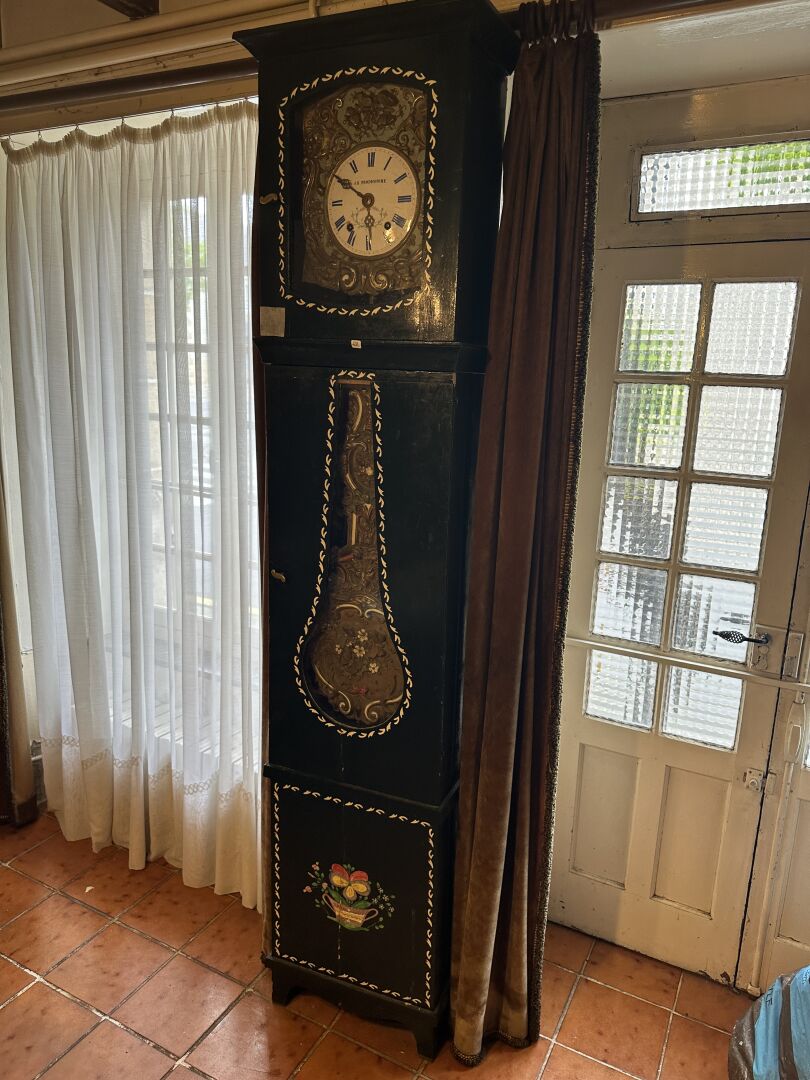 DANS LA SALLE A MANGER Horloge de parquet, cadran à chiffres romains signé J.B.PRODHOMME.