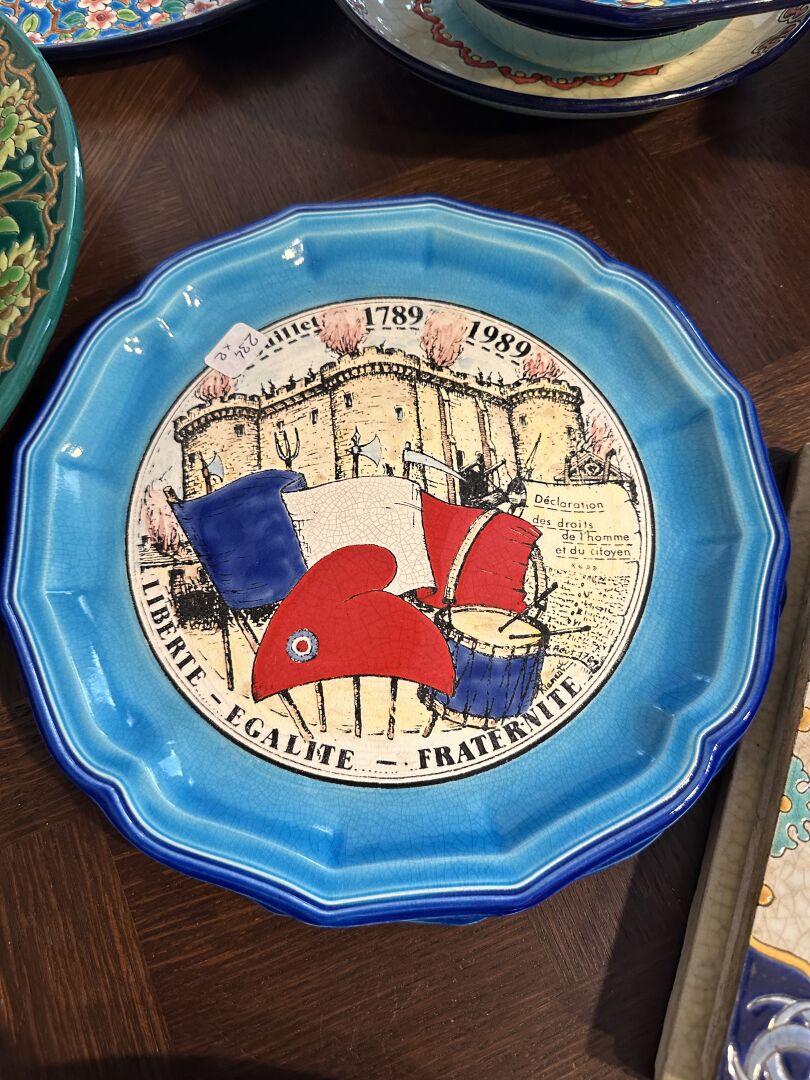 EMAUX DE LONGWY Réunion de deux assiettes révolutionnaires en faïence émaillée polychrome à décor de la prise de la Bastille. Tirages limités, numérotés 511/10000 et 173/1000.