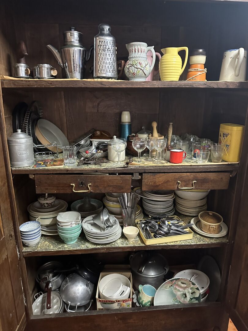 DANS LA CUISINE Vaisselle et verrerie (contenus dans l'armoire et présentés sur les murs).