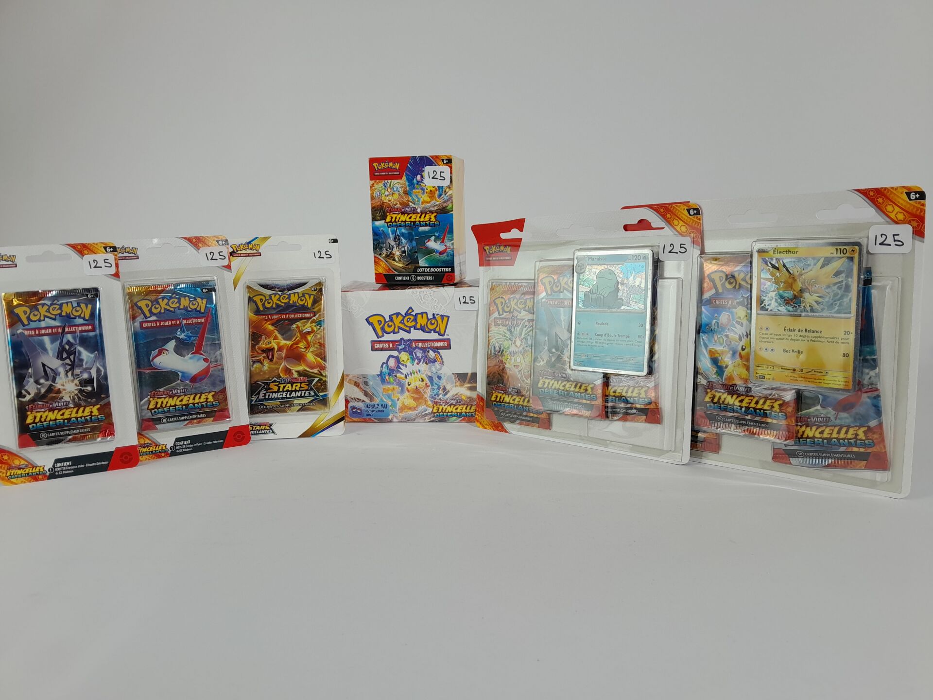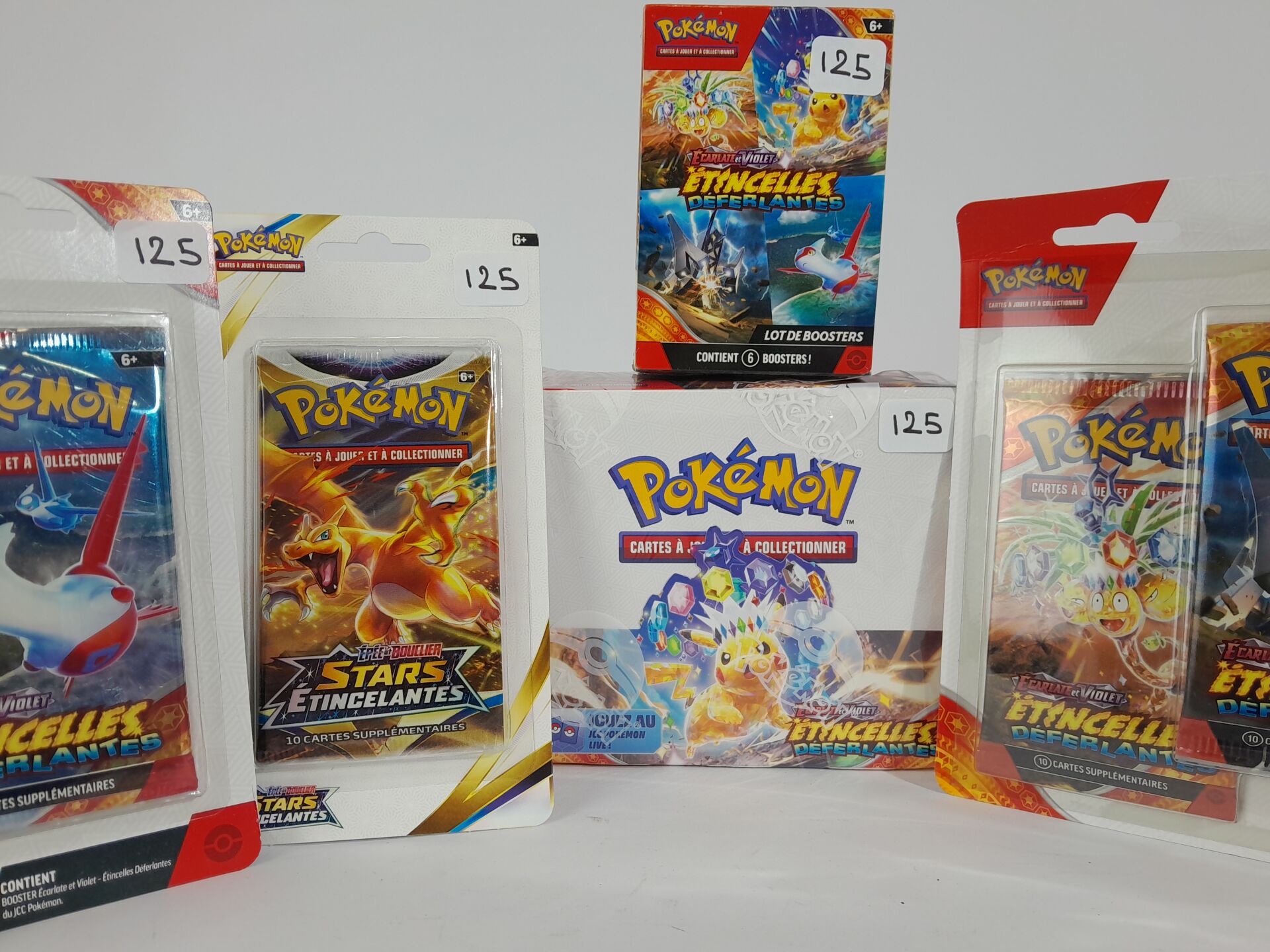 POKEMON - Lot version français "ETINCELLES DEFERLANTES" comprenant : -1 display scellée de 36 boosters -2 pack scellés de 3 boosters -1 bundle scellé de 6 boosters -3 boosters