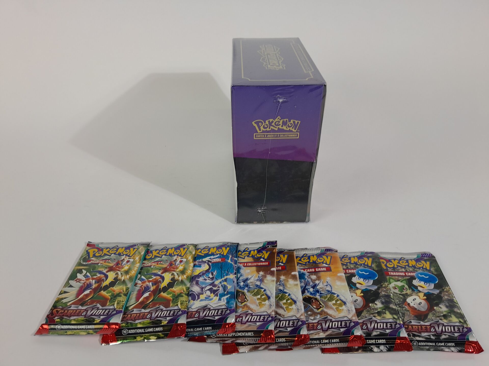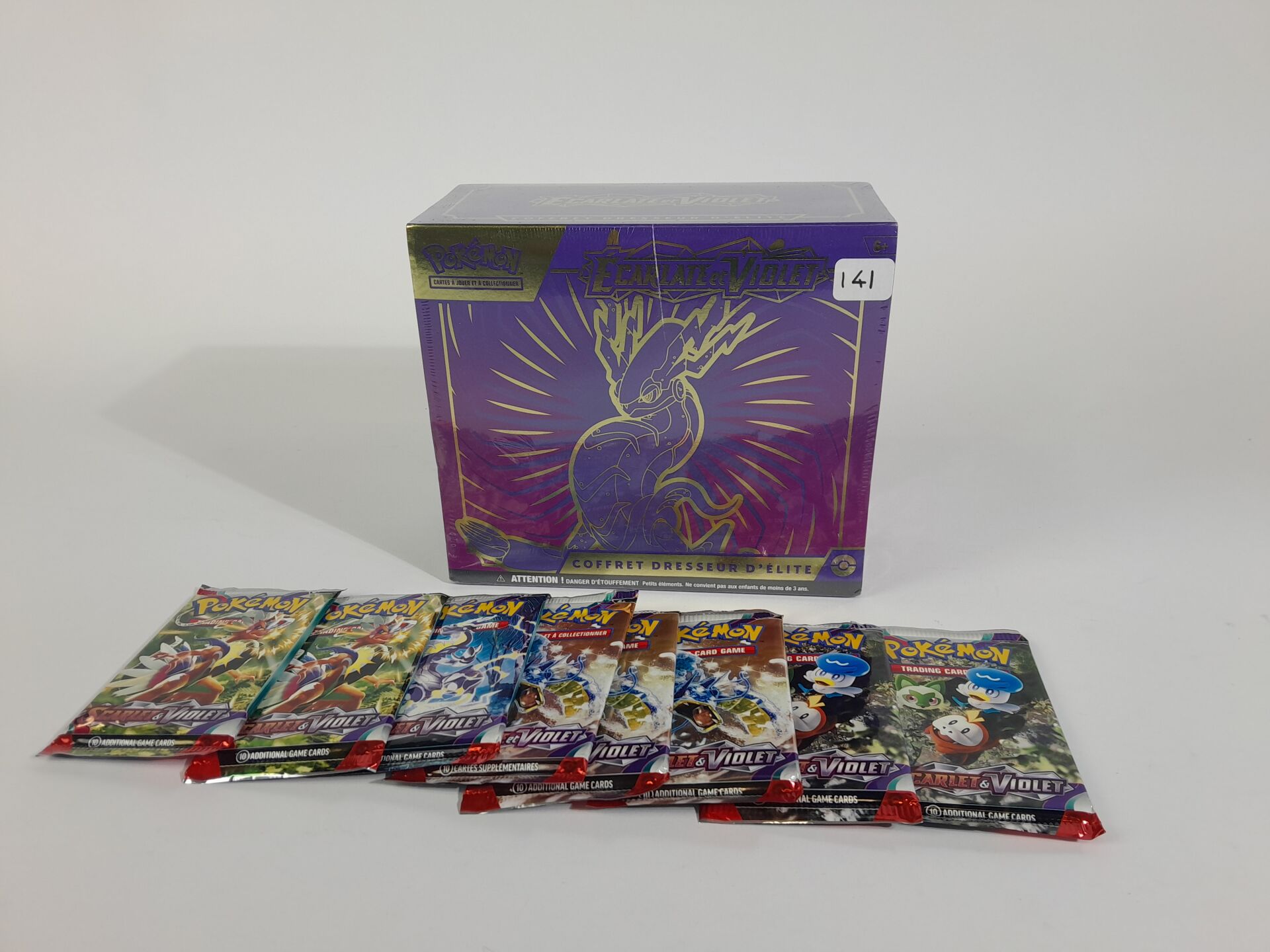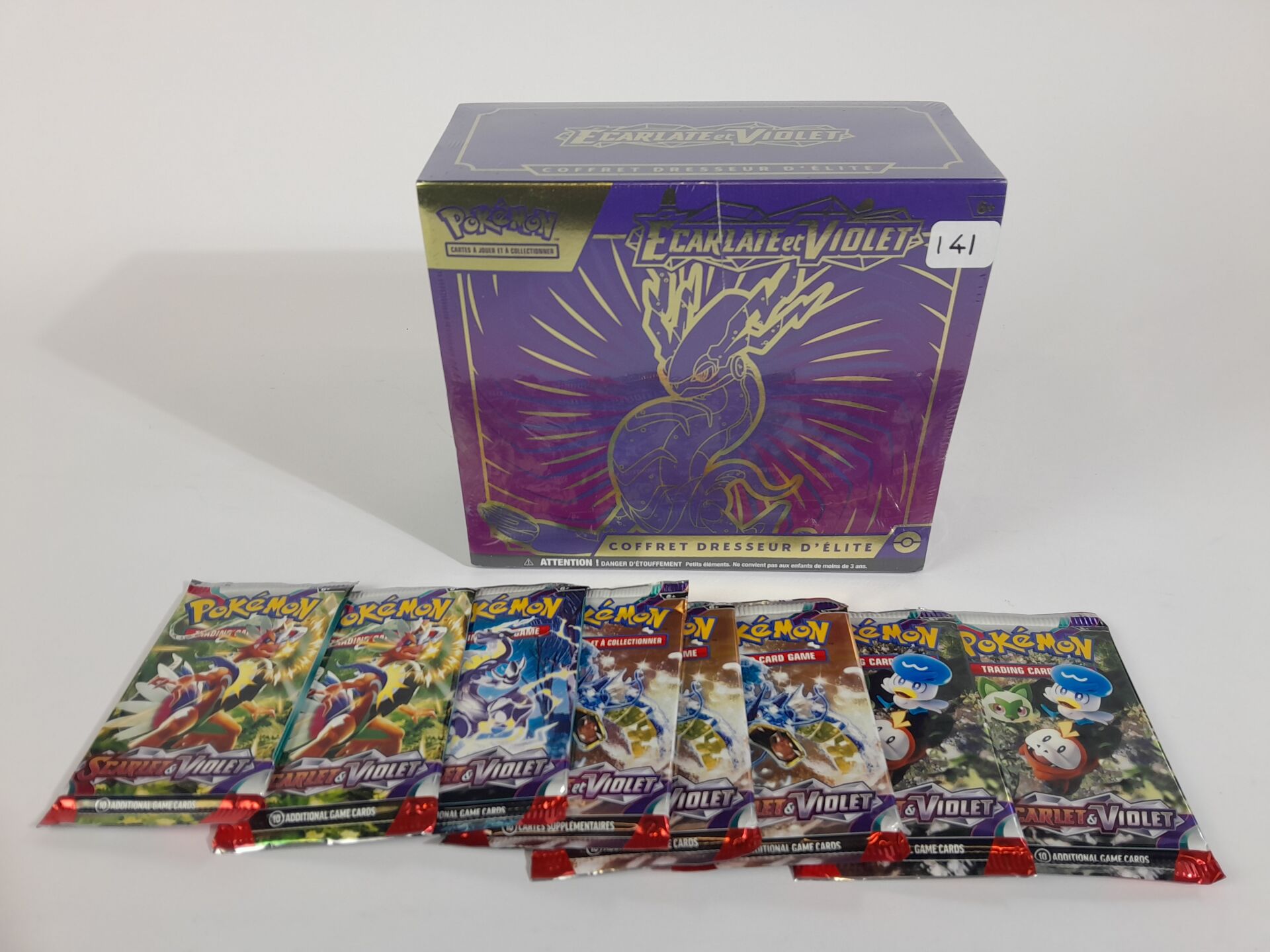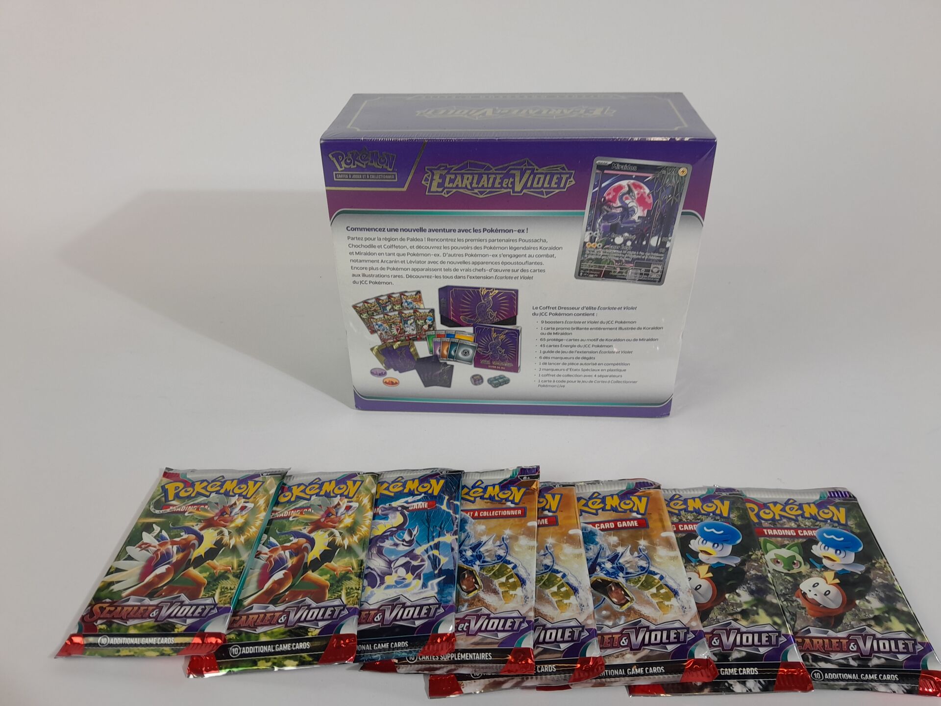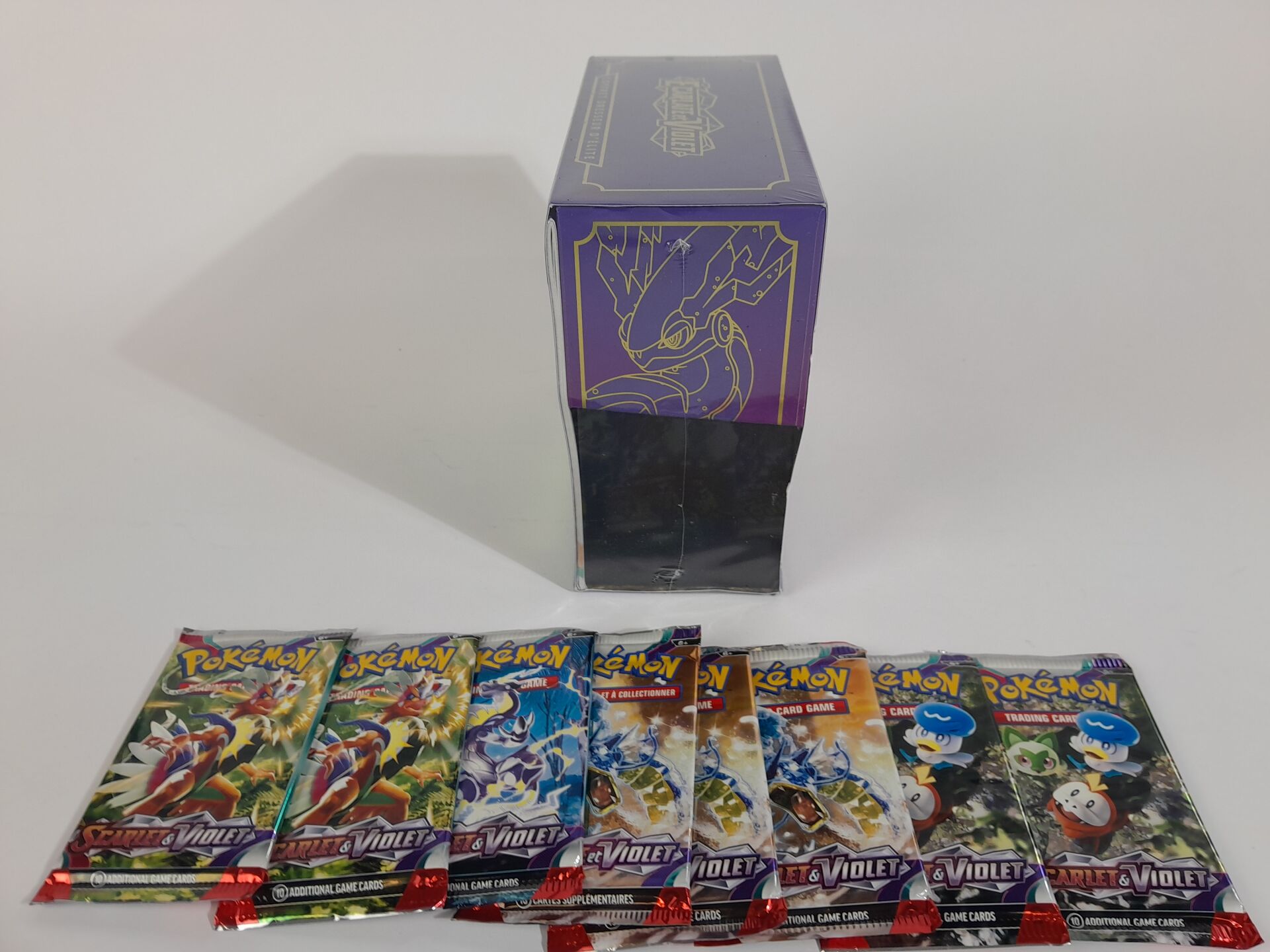 POKEMON - Lot version français "ECARLATE ET VIOLET" comprenant : -1 coffret scellé Dresseur d'Elite -8 boosters