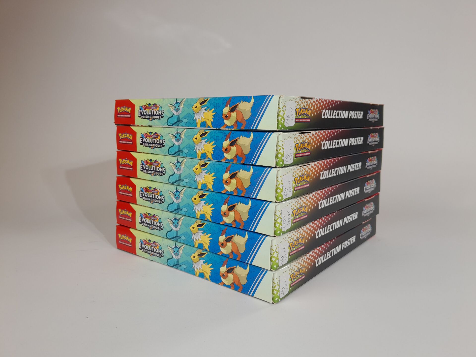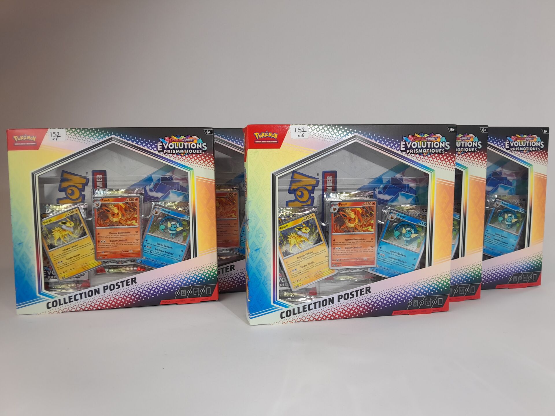 POKEMON - 6 Collections Poster Evolution Prismatiques en français Chacune contient 3 boosters pour un total de 18 boosters Produits neufs scellés
