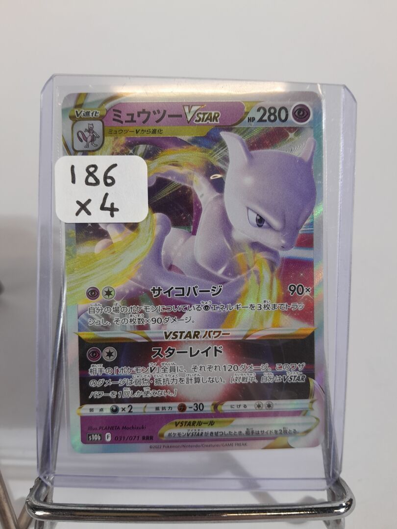POKEMON - Lot de 4 cartes version japonais comprenant : -Mewtwo VSTAR 221/172 état EX+ -Mew EX 205/165 état NM -Mewtwo et mew GX 029/094 état NM -Mewtwo VSTAR 031/078 état NM