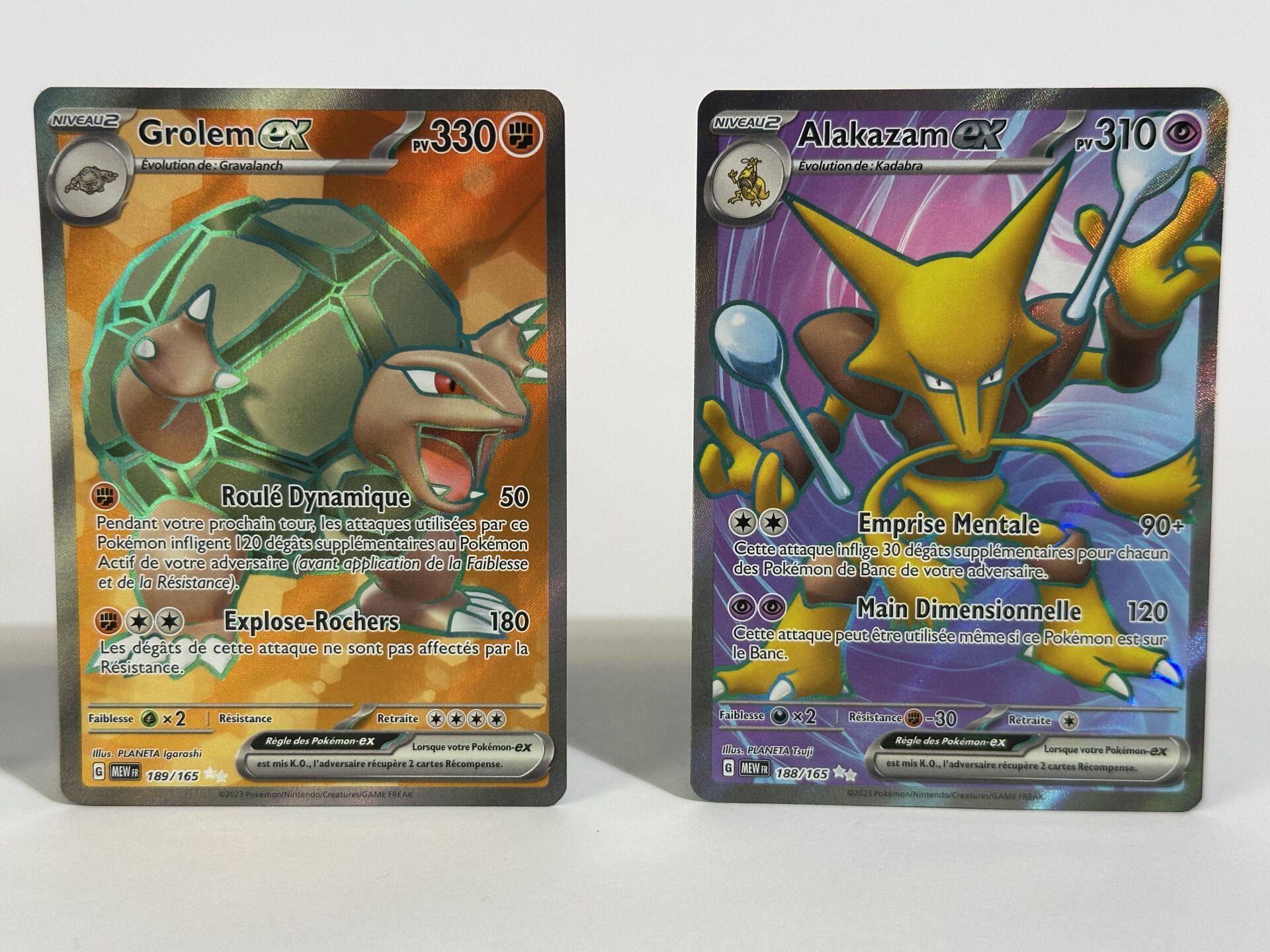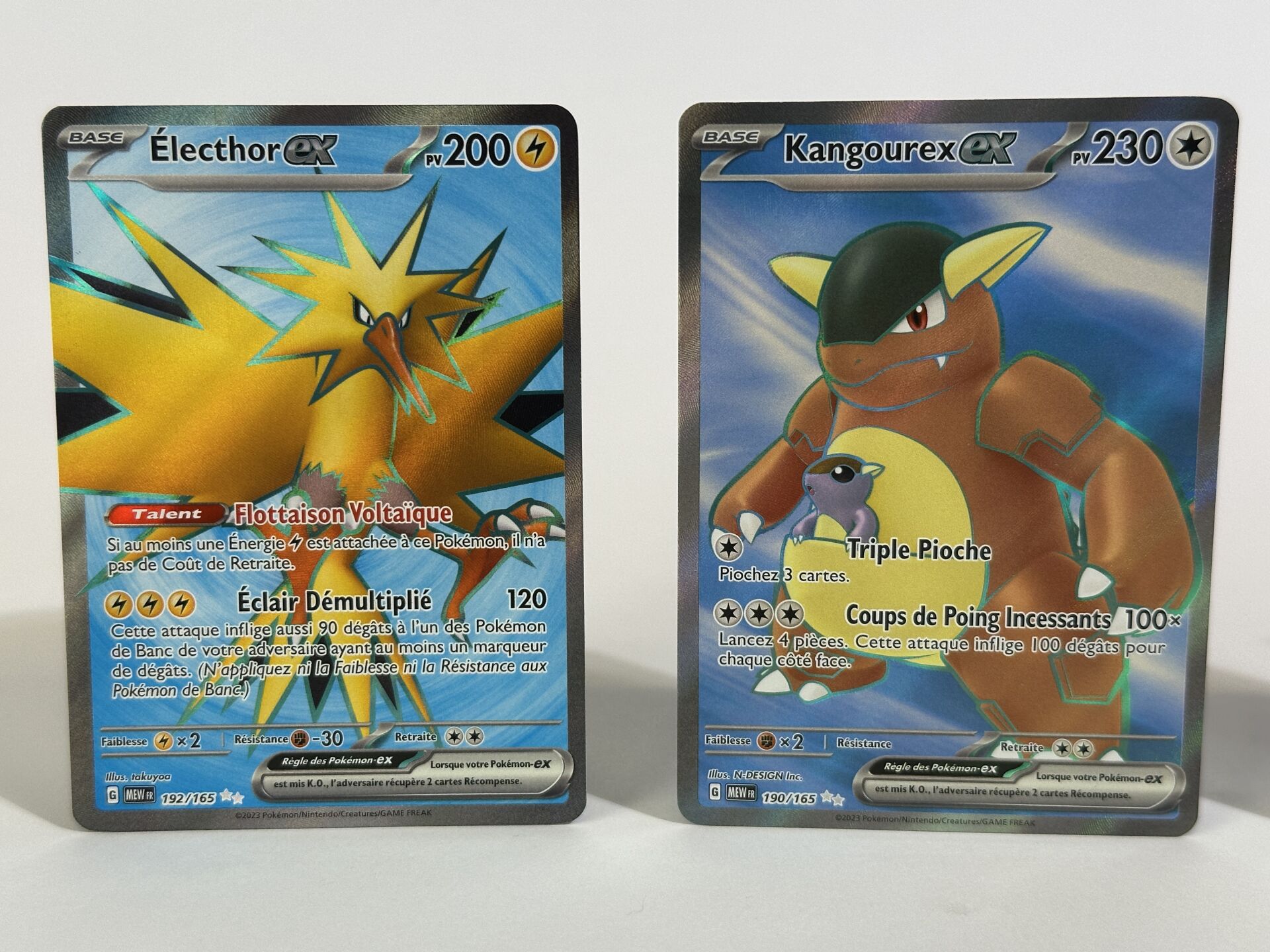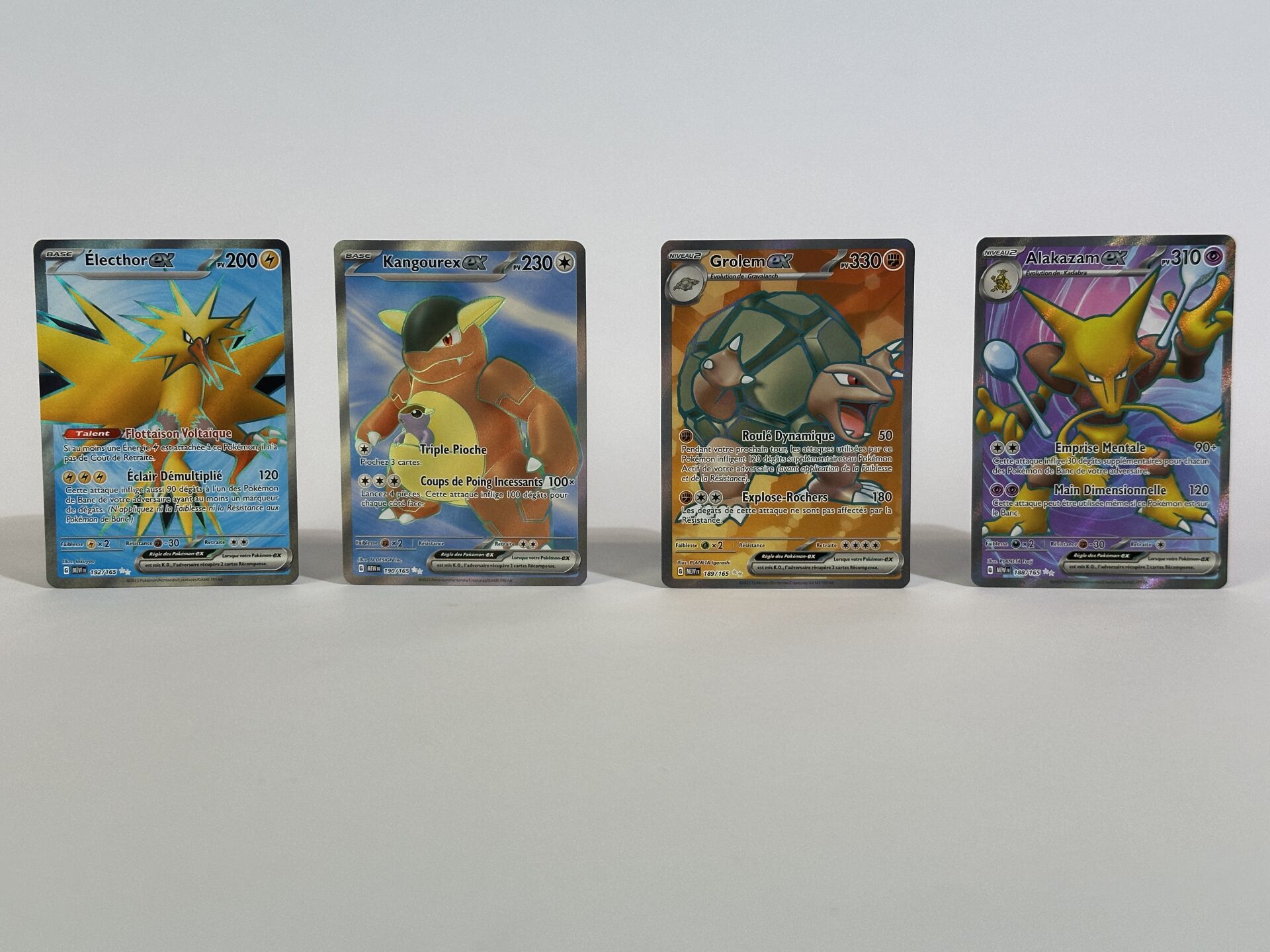 POKEMON - Lot de 4 cartes Pokémon Full Art de l'édition 151 en français, état EX+ comprenant : -Electhor ex -Kangourex ex -Alakazam ex -Grolem ex
