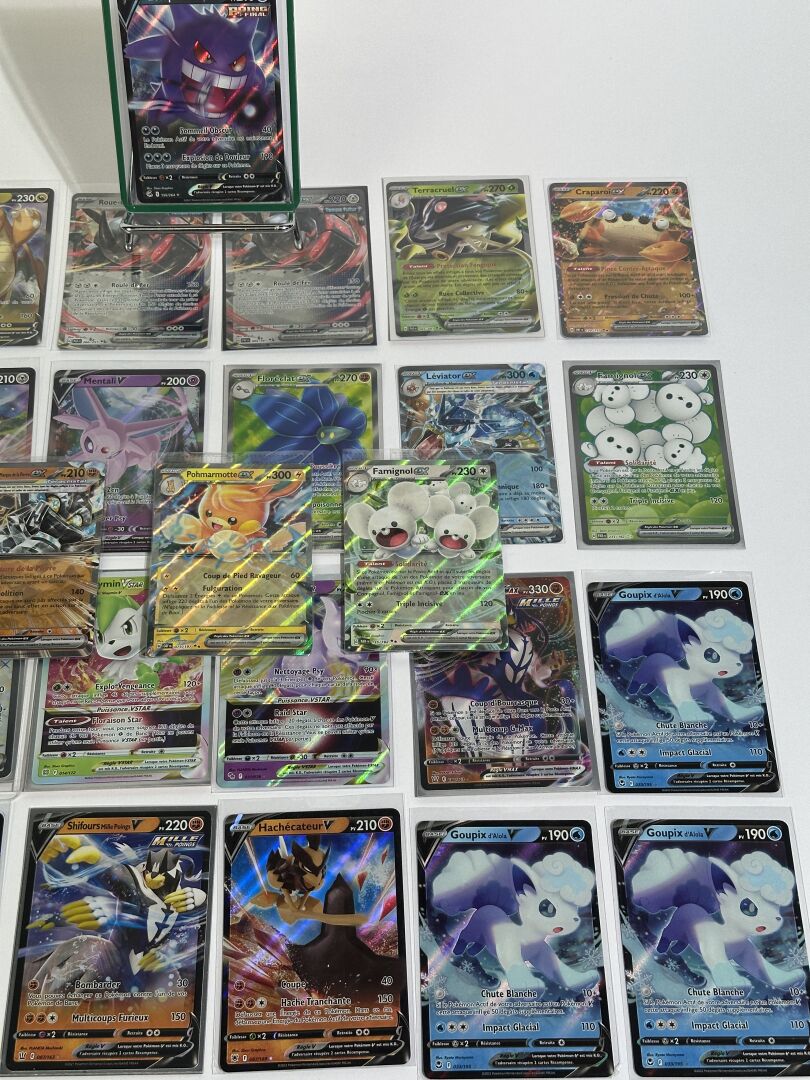POKEMON - Lot de 28 cartes Pokémo ex / V / VSTAR / VMAX, en français, état EX/NM, dont : - Léviator ex Téracristal de l'édition Écarlate et Violet - Ectoplasma V de l'édition Poing de Fusion