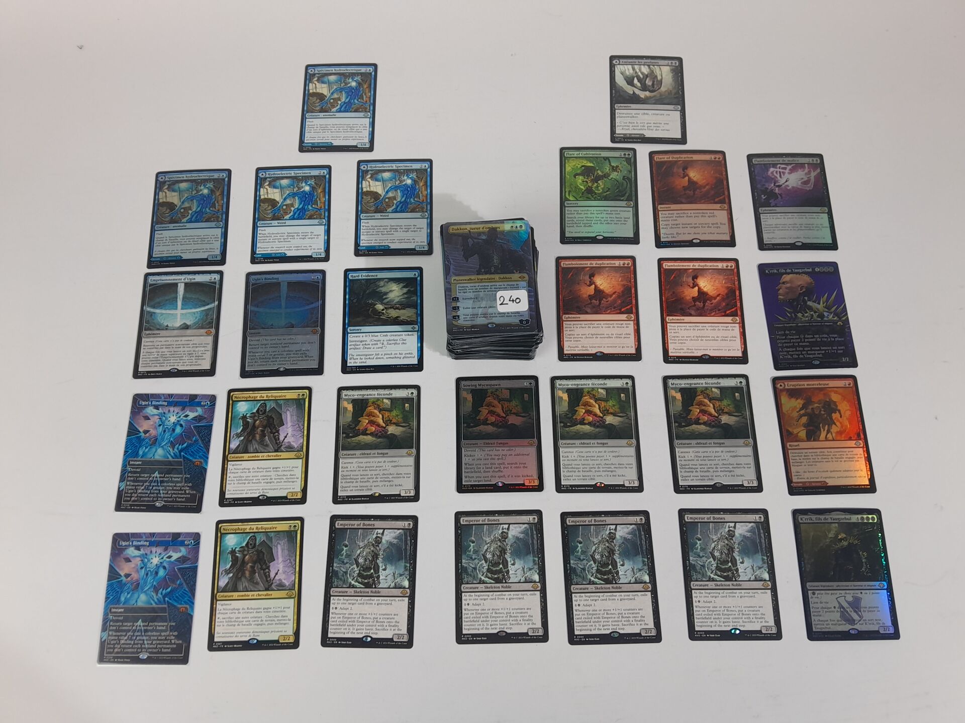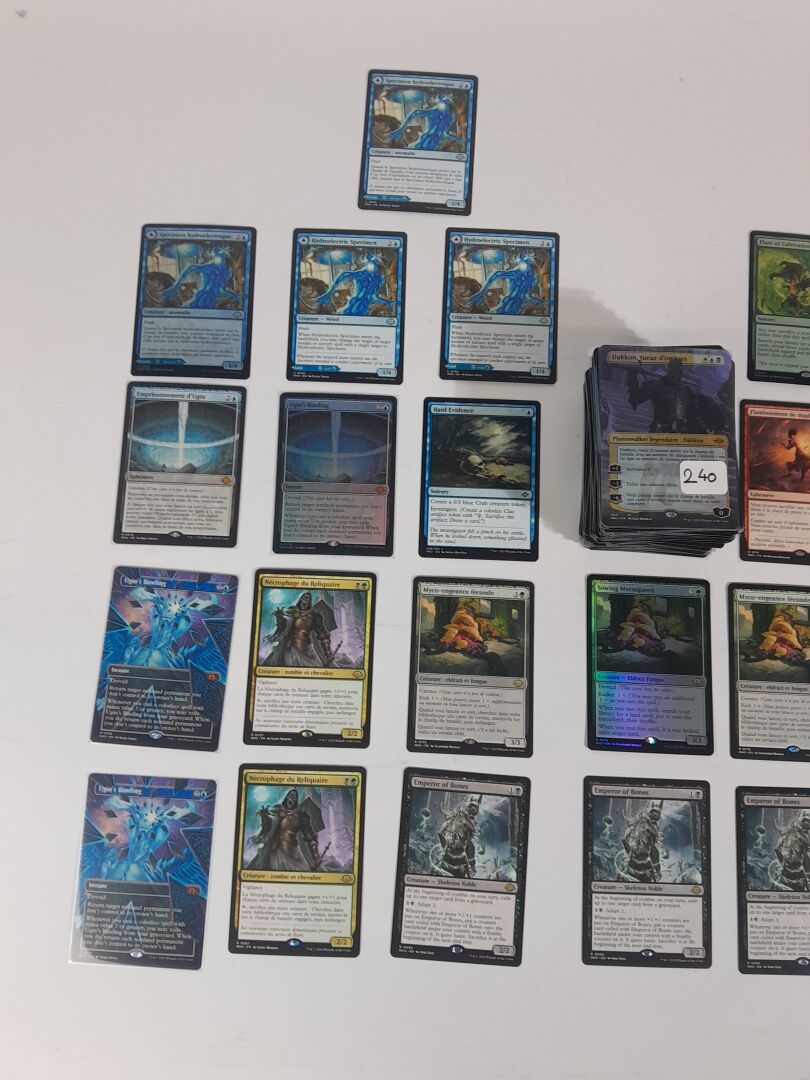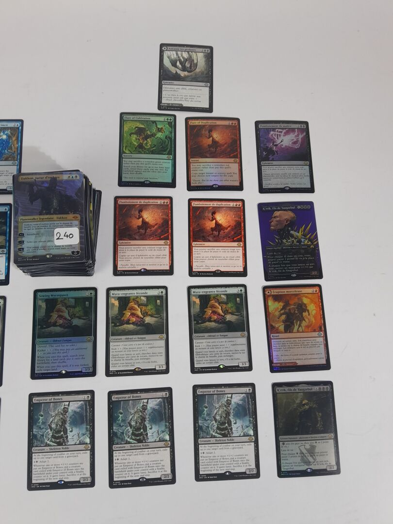 MAGIC THE GATHERING - Lot de plus de 150 cartes "Modern Horizon" 1, 2 et 3, langues et états variées, dont : -4x Hydroelectric specimen -3x Flamboiement de duplication -4x Myco-engeance féconde -3x Emprisonnement d'Ugin -4x Emperor of bones