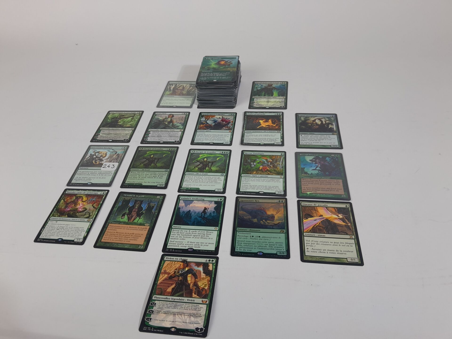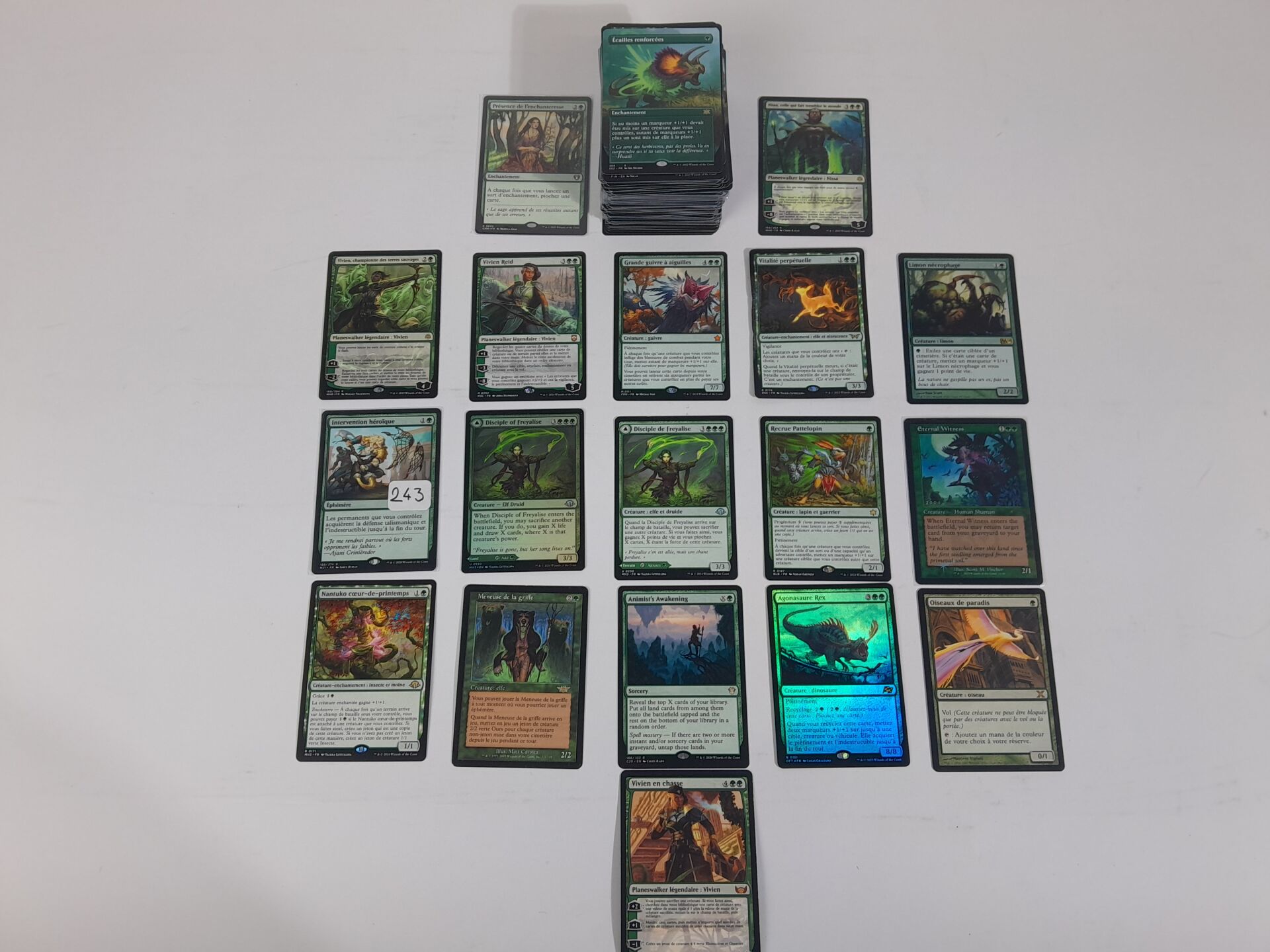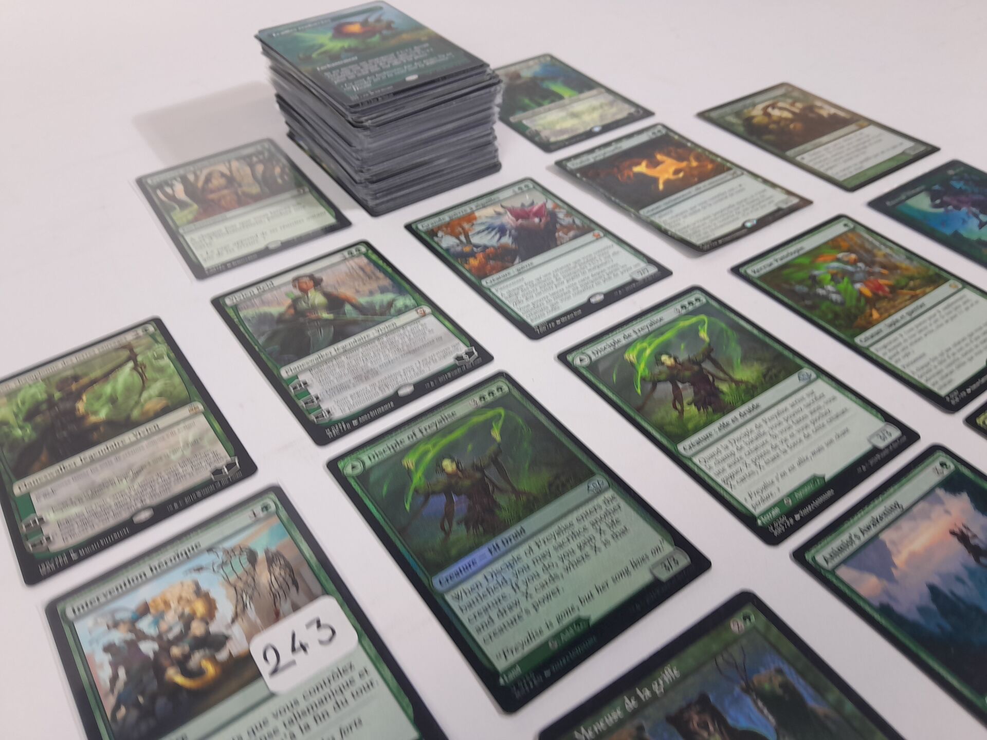 MAGIC THE GATHERING - Lot de plus de 120 cartes vertes, langues et états variées (principalement rares), dont : -2x Disciple de freyalise -Oiseaux de paradis -Intervention héroique -Vitalité perpétuelle -Recrue pattelopin