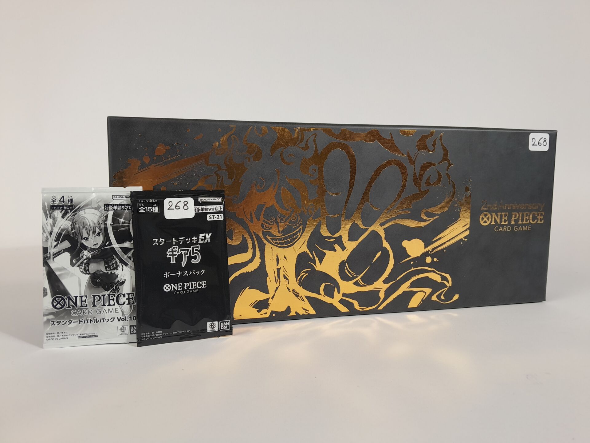 ONE PIECE - Lot version japonais comprenant : -1 bundle "2nd ANNIVERSARY" (non scellé mais complet) -1 Bonus pack ST-21 -1 Standard battle pack Vol.10