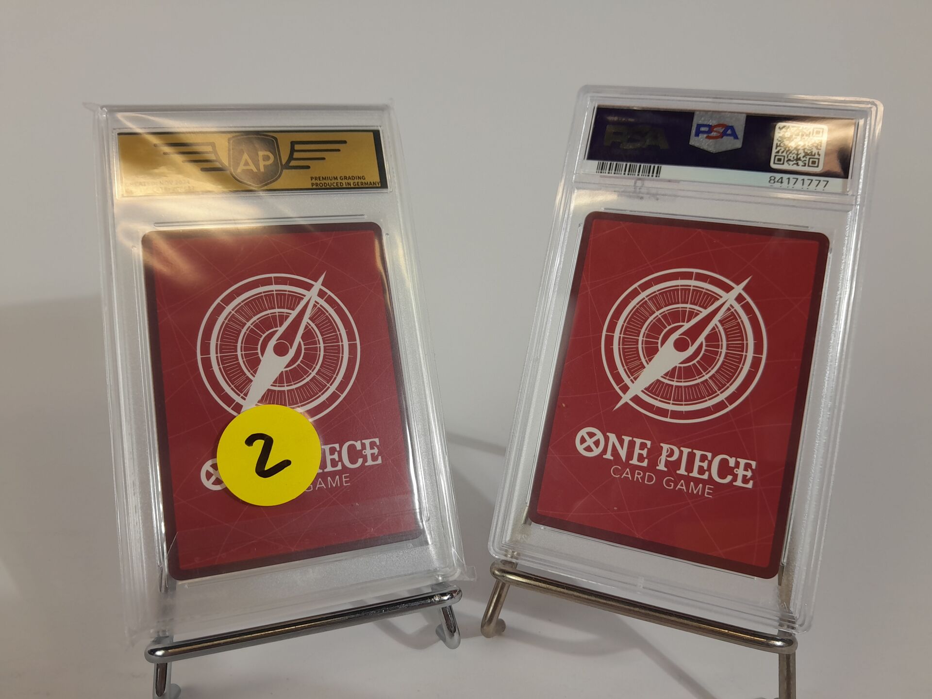 ONE PIECE - Lot de 2 cartes gradées comprenant : -Perona version japonaise, OP06-021 V2, gradée PSA GEM MT -Uta version japonaise, OP06-001 V2, gradée AP GEM MT