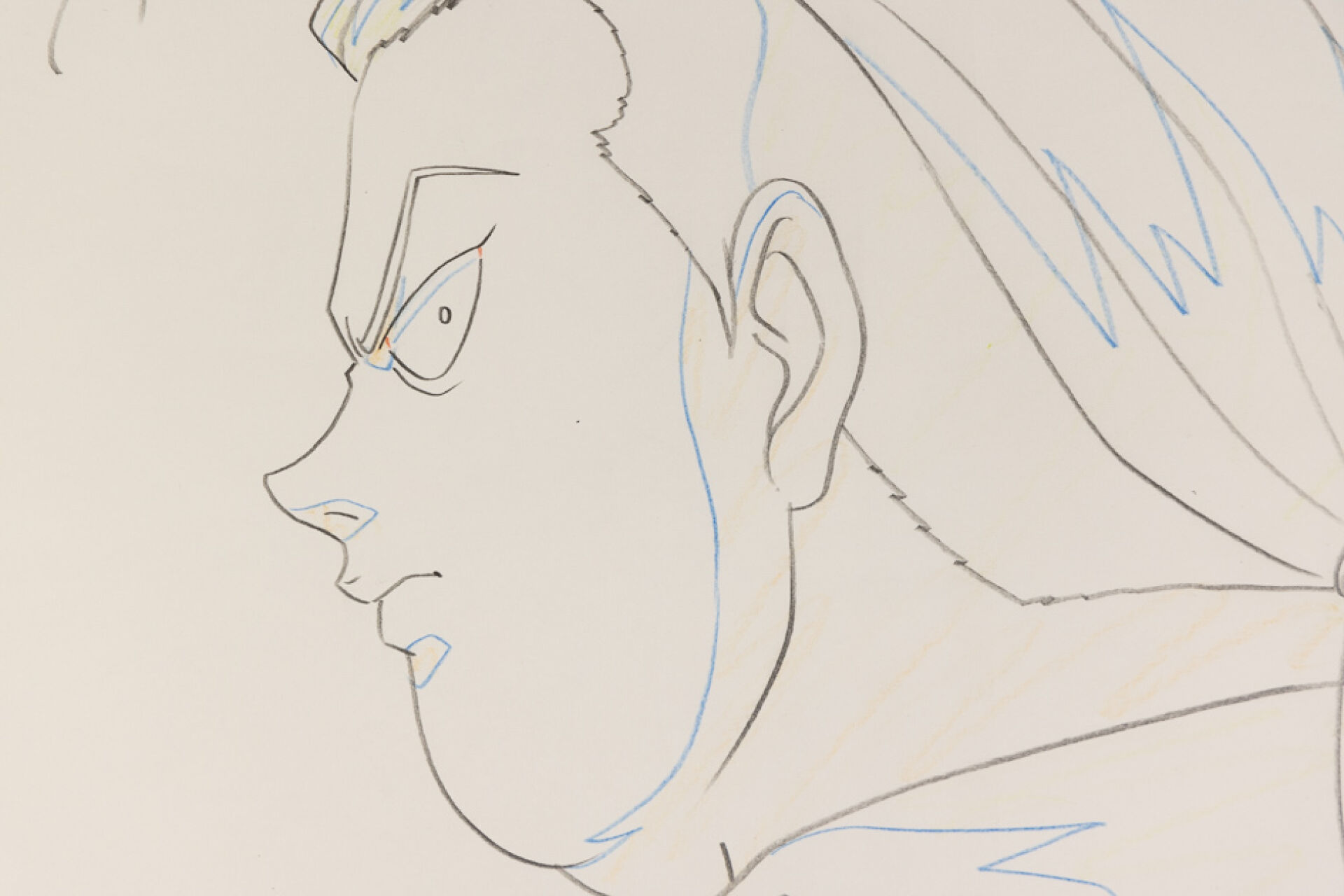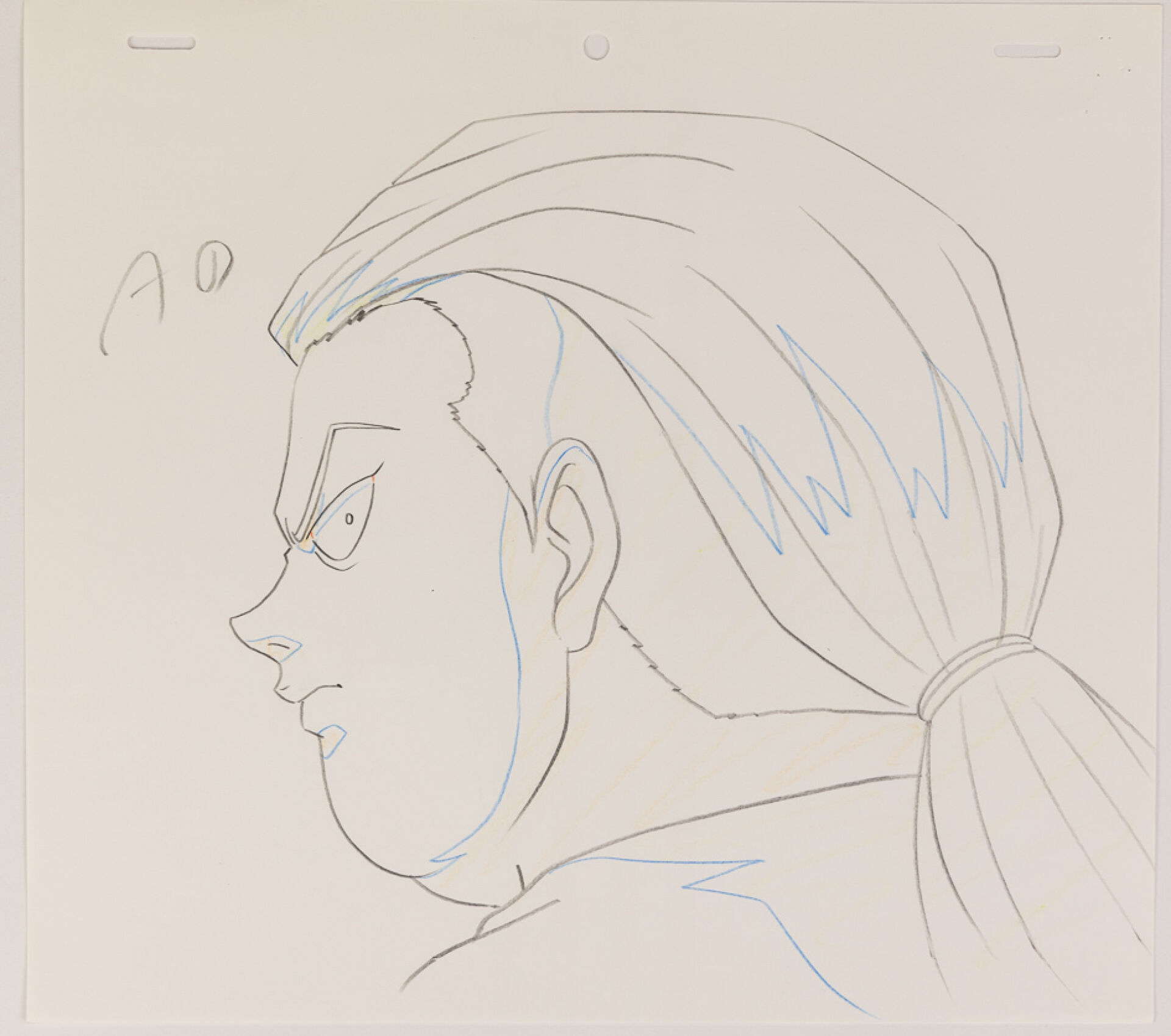 Yoshihiro Togashi (冨樫 義博) - Hunter × Hunter (ハンター×ハンター) - Todo (ト ー ド ー) : Dôga (Douga) original à la mine de plomb et aux crayons de couleur représentant Todo observant du coin de l'œil. Tiré de l'épisode Épisode 10 "Insuffisance X Panique X Voix du ciel" ou "赤点×パニック×天の声". Haut. : 24 cm - Larg. : 27 cm 1999 Expédition sur devis.